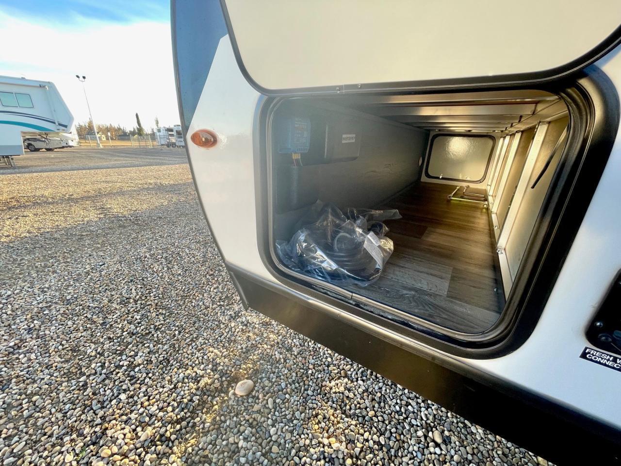 Crossfire Package: 13.5K BTU Air Conditioner, AM/FM Stereo w/Bluetooth, 6 Cu Ft Fridge, 2 Burner Range w/ Cover, Stainless Steel Sink w/High Rise Faucet. Sink Cover, Tub Surround w/Shelves, Dual 20# LP Tanks, XL Grab Handle, Electric Awning w/LED Light Strip, Exterior Speakers, TV Antenna and Cable Hook Up, Black Tank Flush, Exterior Shower, 6 gal DSI Gas/Elec Water Heater.