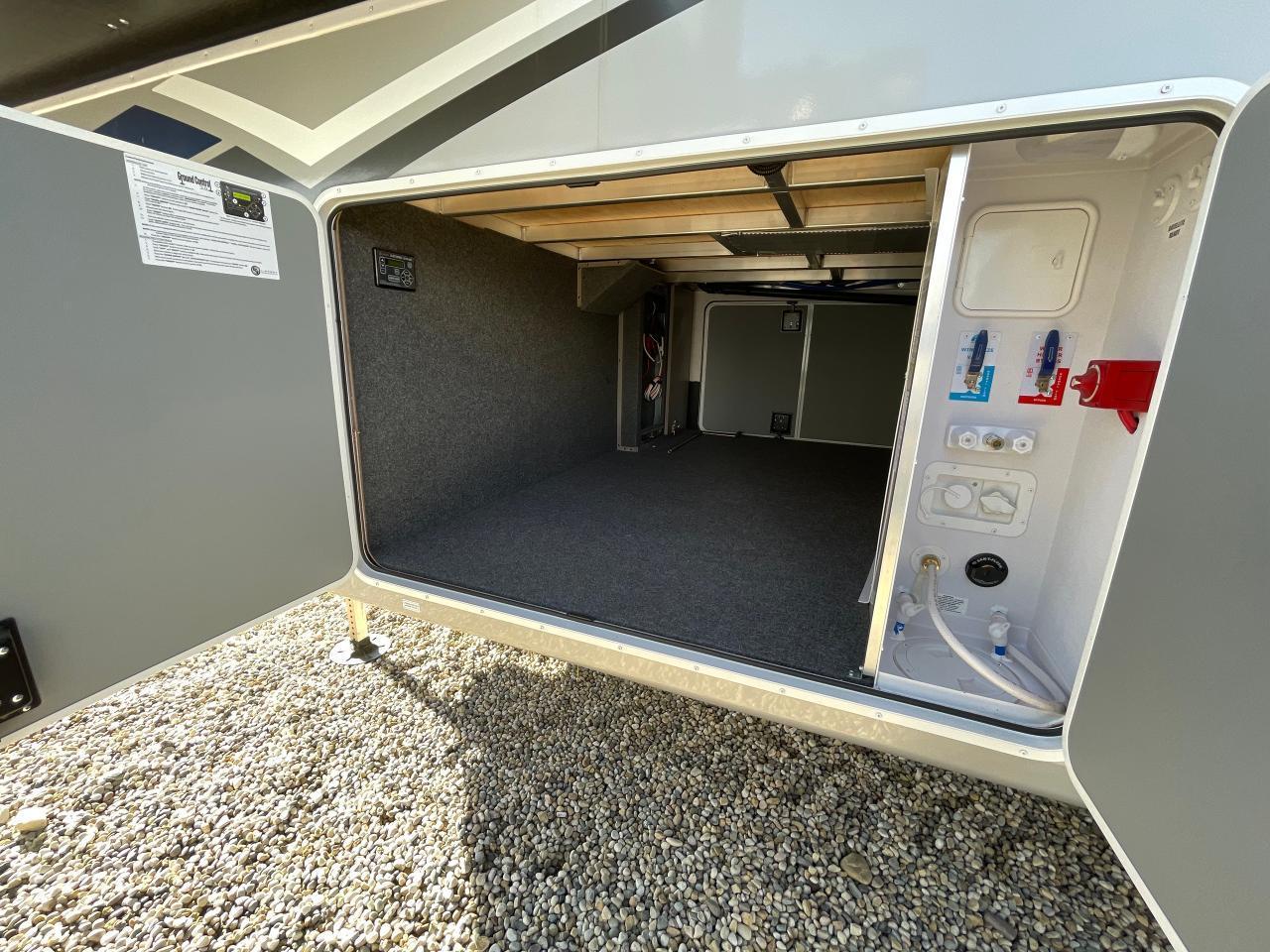 MorRyde Step Above, Slam Latch Doors w/Magnetic Catches, LED Lighting, Phatt Ladder, LPG Quick Connect, Black Water Flush System, Entry Grab Handle & Friction Hinge, Exterior Shower, Winterization and Bypass System, Exterior Speakers, Battery Disconnect, Generator & Satellite Ready