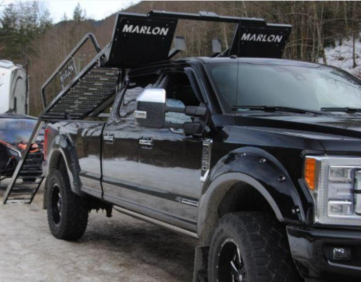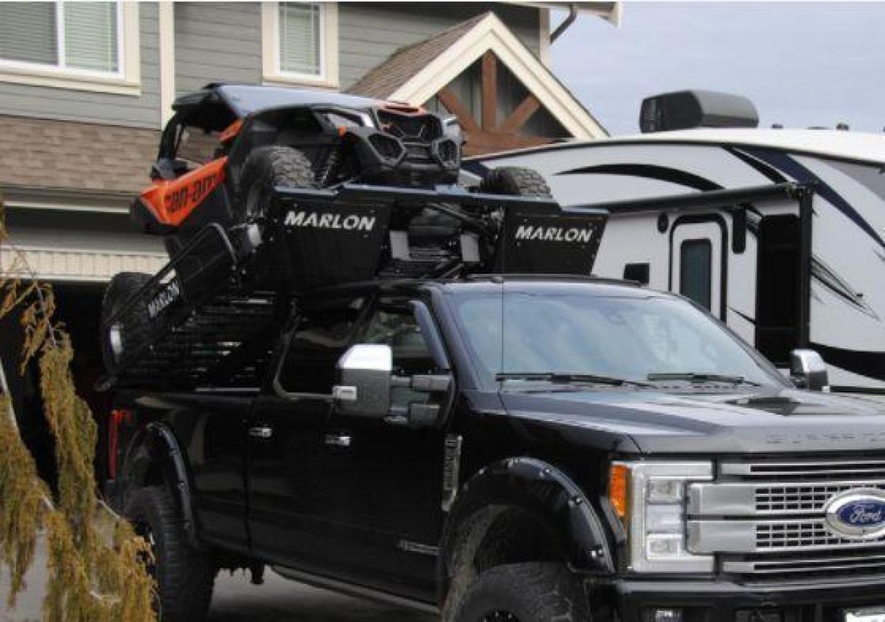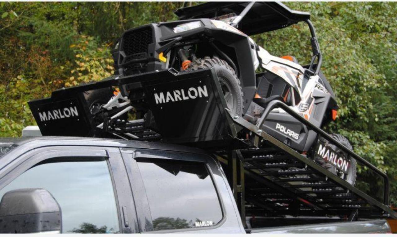 Our latest side by side (SXS) deck was designed to carry 2 and 4 door side by sides up to 120” max length. Now capable of carrying the new 50" wide machines up to the widest factory SXS at 76" with the new addition of the optional SXS Extension you can now carry machines up to 165" in length! The deck comes standard with 10’ ramps that have 4” side safety edges making them safe and secure when loading and unloading. Carry your side by side to the starting line or staging area with your camping trailer in tow. The Marlon Xplore II SXS Deck is specifically designed so you don’t lose any turning radius pulling a trailer. This unique design allows you to easily change from a short box to a long box within minutes. The solid mount winch plate will accommodate a Warrior 3500 xt winch and is designed with a pull point, so you can use your SXS winch if you are equipped. We recommend bolting your Marlon Xplore II SXS Deck to your truck with the supplied mounting kit. Machine securement is made easy with our unique tie down system. We have designed the Marlon Xplore II SXS Deck to have a positive park front tire position which gives the driver a real feel when your machine is loaded to the correct position. All loading ramp and deck ramps have rung protectors on them to assist in traction which is a huge safety feature. When not in use the ramps slide in and are secured under your toy! Now go out and Xplore!