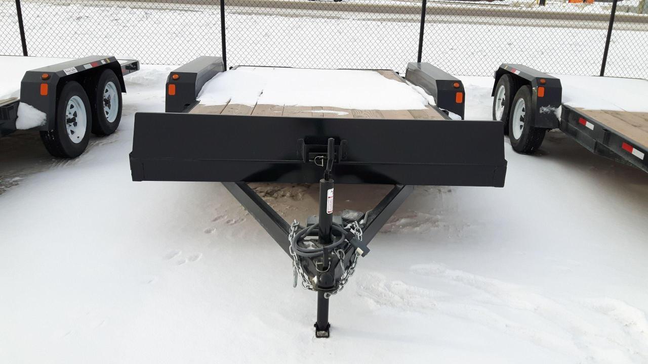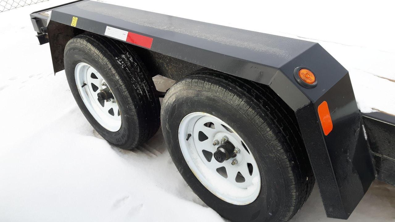 7000# GVWR, steel frame, spring axles, voltflex wiring harness, 2x10 treated Douglas Fir decking, heavy duty stake pockets & rubrail, LED lights, slide-in ramps, 2' dovetail, electric brakes, stoneguard, driver side step, 12K side wind jack with dropleg, 16" O/C crossmembers, heavy duty fender guard. Stock# HH4724. For more info call wilf's Elie Ford toll free 877-360-3673. Dealer# 0521.