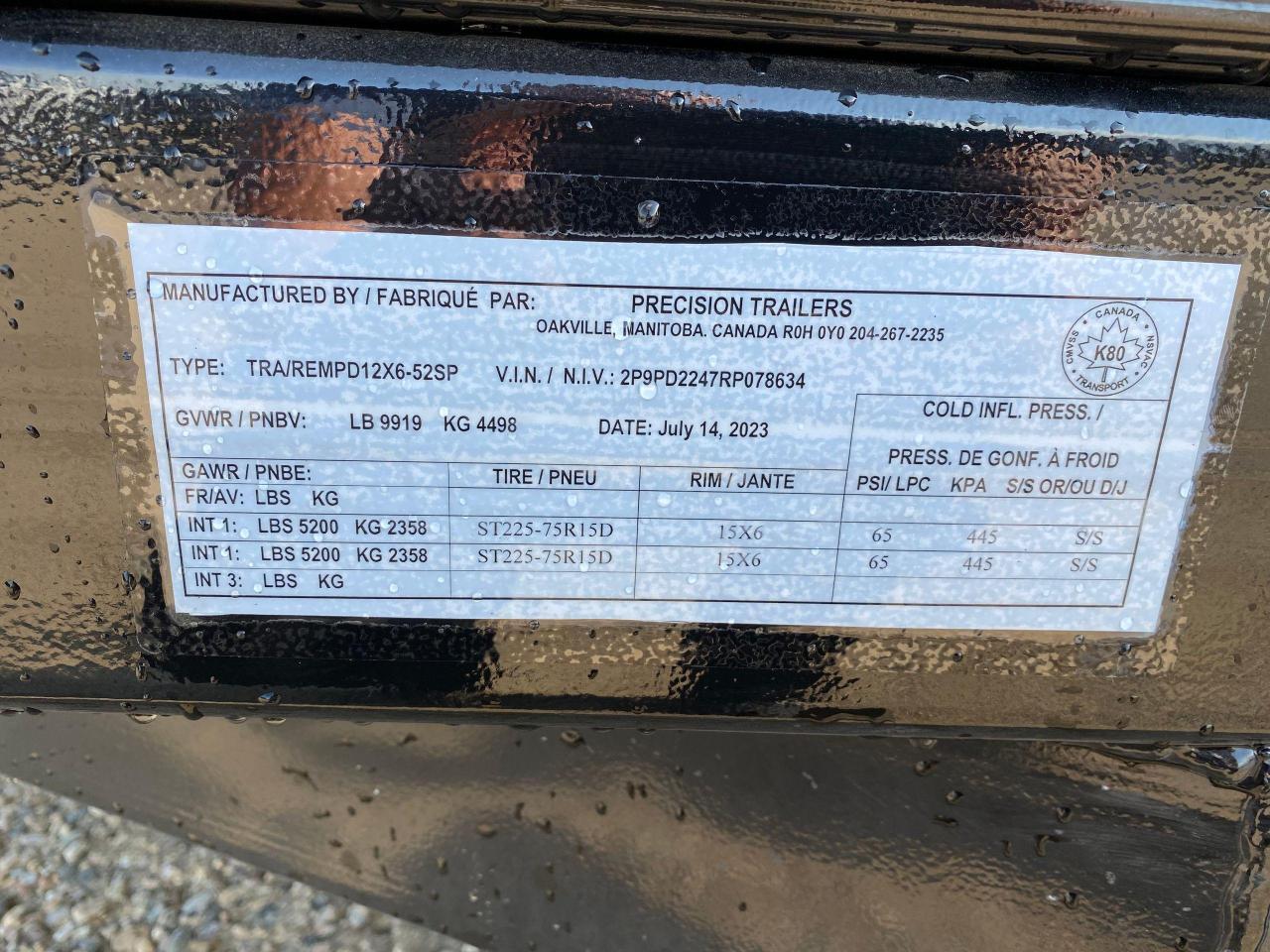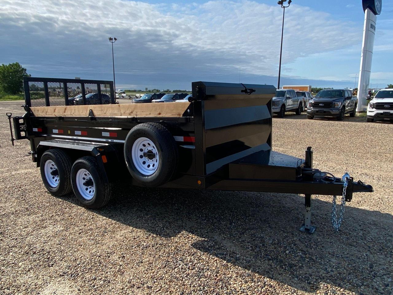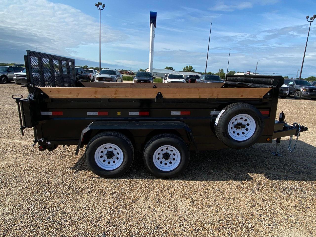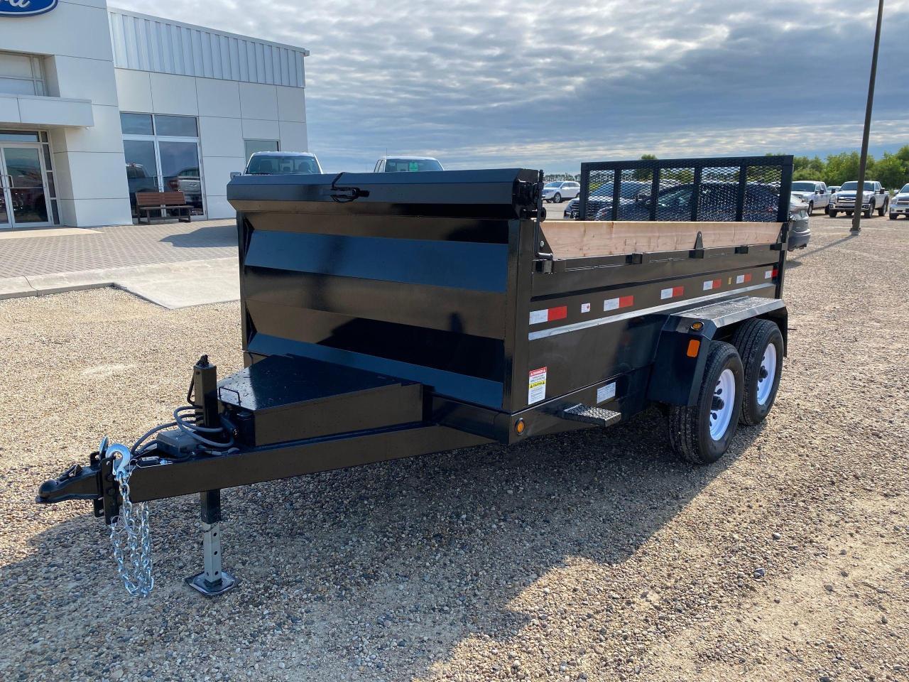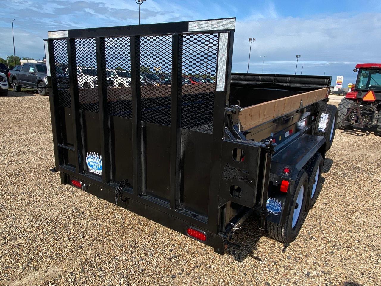 6' x 12' Precision Dump Trailer, 9900# GVWR, steel frame, torflex axles, electric brakes, voltflex wiring harness, LED lights, driver side step, a-frame tool box, 16" O/C crossmembers, 3 way tailgate, single push arm hoist, 3/16 floor, 1/8 sides, heavy duty fenders, spare tire holder with lock and spare tire, tarp. Stock# HH5027. For more info call Wilf's Elie Ford toll free 877-360-3673. Dealer# 0521