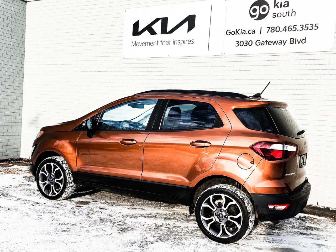 Canyon Ridge Metallic 2018 Ford EcoSport SES 4WD 6-Speed Automatic 2.0L I4 Ti-VCT GDI4-Wheel Disc Brakes, 7 Speakers, ABS brakes, Air Conditioning, Alloy wheels, AM/FM radio: SiriusXM, AppLink/Apple CarPlay and Android Auto, Auto-dimming Rear-View mirror, Automatic temperature control, Axle Ratio: 3.51, Block heater, Brake assist, Bumpers: body-colour, Compass, Delay-off headlights, Driver door bin, Driver vanity mirror, Dual front impact airbags, Dual front side impact airbags, Electronic Stability Control, Emergency communication system: SYNC 3 911 Assist, Exterior Parking Camera Rear, Front anti-roll bar, Front Bucket Seats, Front fog lights, Front reading lights, Front wheel independent suspension, Fully automatic headlights, Heated front seats, Illuminated entry, Knee airbag, Leather Shift Knob, Low tire pressure warning, Navigation System, Occupant sensing airbag, Outside temperature display, Overhead airbag, Overhead console, Panic alarm, Partial Leather-Trimmed Heated Bucket Seats, Passenger door bin, Passenger vanity mirror, Power door mirrors, Power driver seat, Power moonroof, Power steering, Power windows, Radio data system, Radio: AM/FM/MP3 Stereo, Rain sensing wipers, Rear anti-roll bar, Rear Parking Sensors, Rear side impact airbag, Rear window defroster, Rear window wiper, Remote keyless entry, Roof rack, SiriusXM Radio, Speed control, Speed-sensing steering, Split folding rear seat, Spoiler, Steering wheel mounted audio controls, SYNC 3 Communications & Entertainment System, SYNC Connect, Tachometer, Telescoping steering wheel, Tilt steering wheel, Traction control, Trip computer, Turn signal indicator mirrors, Variably intermittent wipers, Wheels: 17" Premium Tarnished Dark.IN HOUSE FINANCING, IN HOUSE LEASING AVAILABLE O.A.C.If you are interested and need more information call or message our sales team, we will be glad to help you now!!Our knowledgeable sales staff will help assist you with every step. To book a test drive or receive further information give us a call at (780)-465-3535 or email us: kiahmed@gokia.caAt Go Kia, were happy to help! Proudly serving Edmonton and all of Alberta including St. Albert, Wetaskiwin, Fort McMurray, Grande Prairie, Drayton Valley, Nisku, Leduc, Rimby, Hinton, St. Paul, Lloydminster, Edson, and all of Western Canada!An AMVIC Licensed Business. Value Priced vehicles are aggressively priced and may require some additional mechanical or cosmetic repairs, all disclosed on a Vehicle Assessment Report!This vehicle may be leased or financed by anyone*, however, due to the recent increase in fraudulent vehicle purchase activity, Go Kia reserves the right to decline a transaction on suspicion of non-retail intentions including but not limited to wholesaling or exporting.*on approved credit, see dealer for details