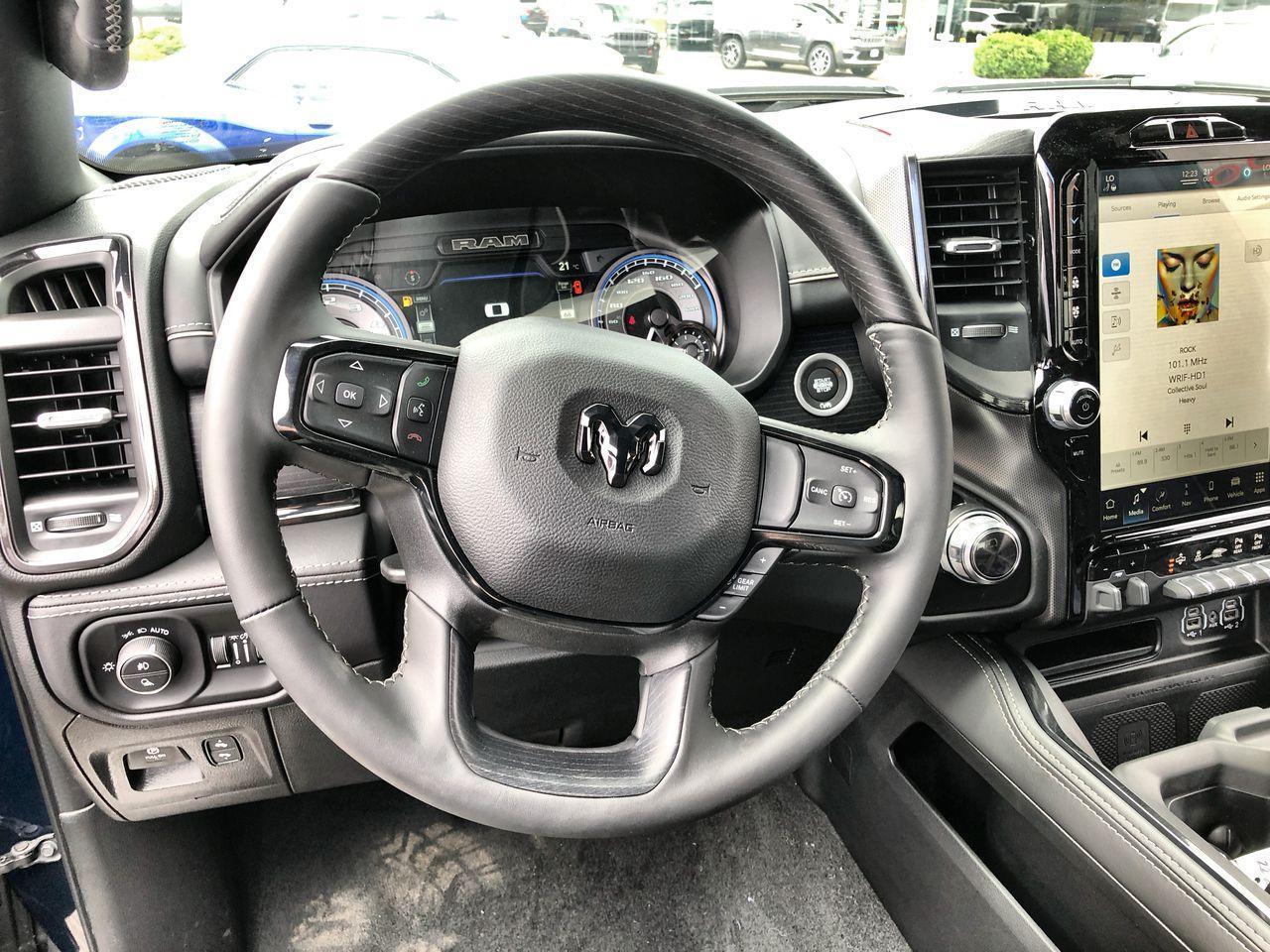 This RAM 1500 Limited, with a 8 Cylinder Engine engine, features a TRANSMISSION: 8-SPEED AUTOMATIC transmission, and generates 11 highway/16.1 city L/100km. Find this vehicle with only 50 kilometers! RAM 1500 Limited Options: This RAM 1500 Limited offers a multitude of options. Technology options include: 12" Touchscreen, Disassociated Touchscreen Display, GPS Antenna Input, GPS Navigation, Voice Recorder. Safety options include Rain Detecting Variable Intermittent Wipers, Systems Monitor, Airbag Occupancy Sensor, Curtain 1st And 2nd Row Airbags, Dual Stage Driver And Passenger Front Airbags. Visit Us: Find this RAM 1500 Limited at Bayview Chrysler Dodge today. We are conveniently located at 255 Indian Road South Sarnia Ontario N7T 3W5.