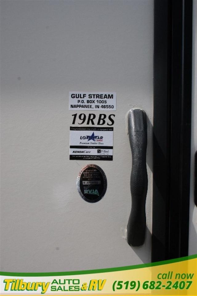 This Vintage Cruiser 19RBS travel trailer by Gulf Stream Coach features a full rear bath layout, front queen size bed, and so much more! As you enter the queen bed is to your right along with dual bedside shirt closets, and an overhead cabinet for more storage.To the left of the door find a booth dinette with overhead storage. The perfect place to enjoy meals and snacks, or when playing boards games or just hanging out. It can also be converted quickly to offer another sleeping space at night for extra family or guests. There is a TV mount on the opposite wall which would make it easy to view.The kitchen amenities allow you to easily create meals and snacks while you travel. There is a double kitchen sink, a two burner cook-top, microwave oven, and refrigerator.The rear of this unit offers a spacious bath with angled shower, toilet and linen cabinet, plus a large vanity and sink opposite, and so much more!