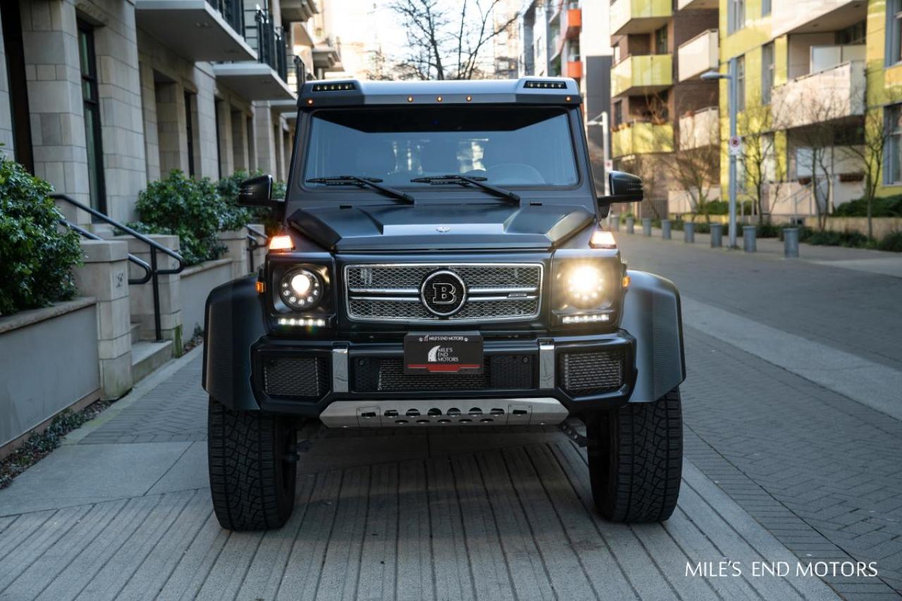 This G 550 comes with AMG carbon fibre trim, designo black leather/DINAMICA and an exclusive high gloss electric beam paint. This piece was professionally wrapped in black. Finished with brabus lights, front grill and optional side step. Only 8,000kms and yours for $289,000.
