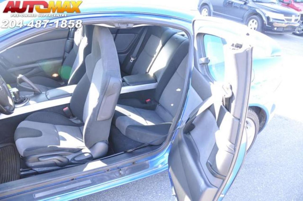 204.487.1858 /// YOU DON'T WANT TO MISS THIS!!! 2004 MAZDA RX-8 GS COUPE 1.8 L ROTARY ENGINE IS A BEAUT. It has a 6 speed manual transmission with power EVERYTHING! Cruise control, Power windows, AM/FM stereo Audio System Premium Brand Speakers: Bose, 1st and 2nd row curtain head airbags, 4-wheel ABS Brakes, Audio controls on steering wheel, Auxilliary engine coolerBucket front seats, Cruise controls on steering wheel, In-Dash 6-disc CD player.