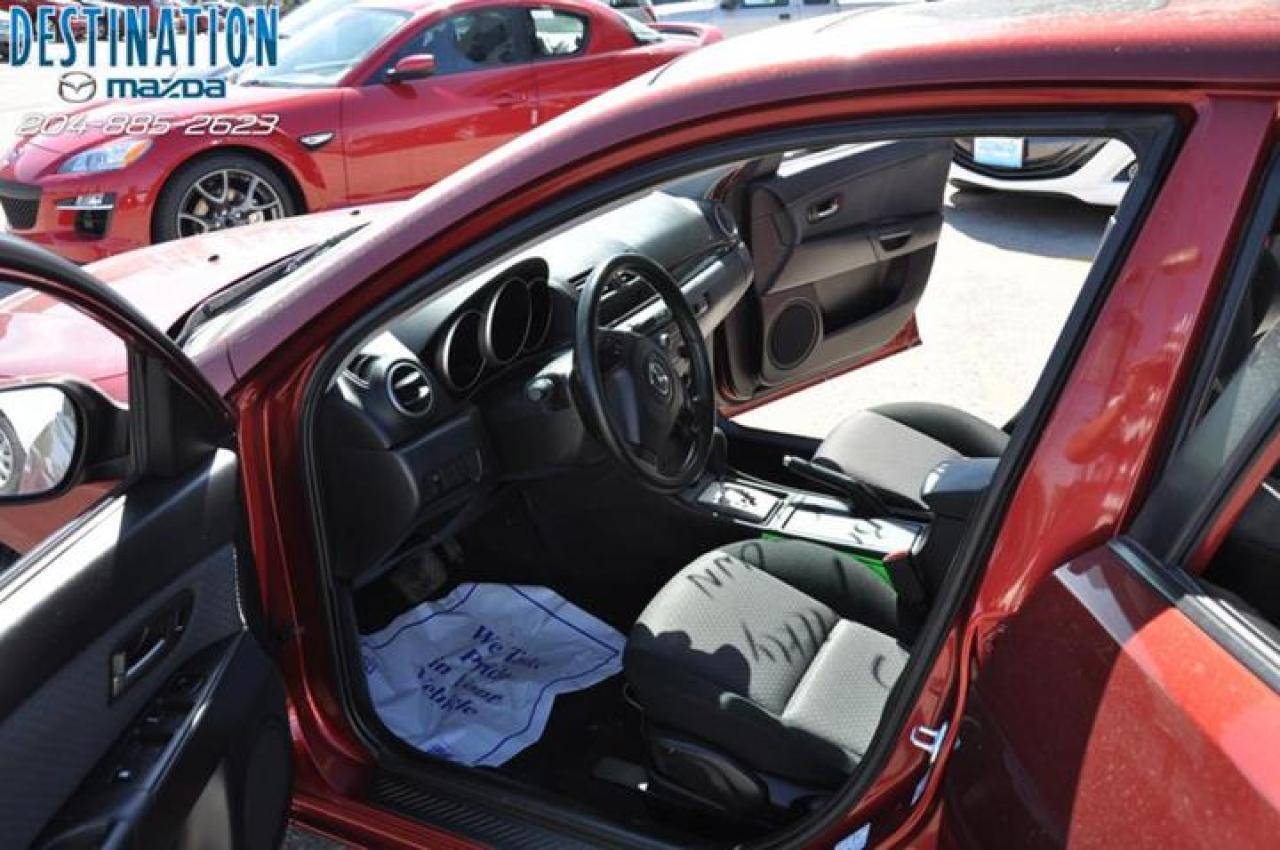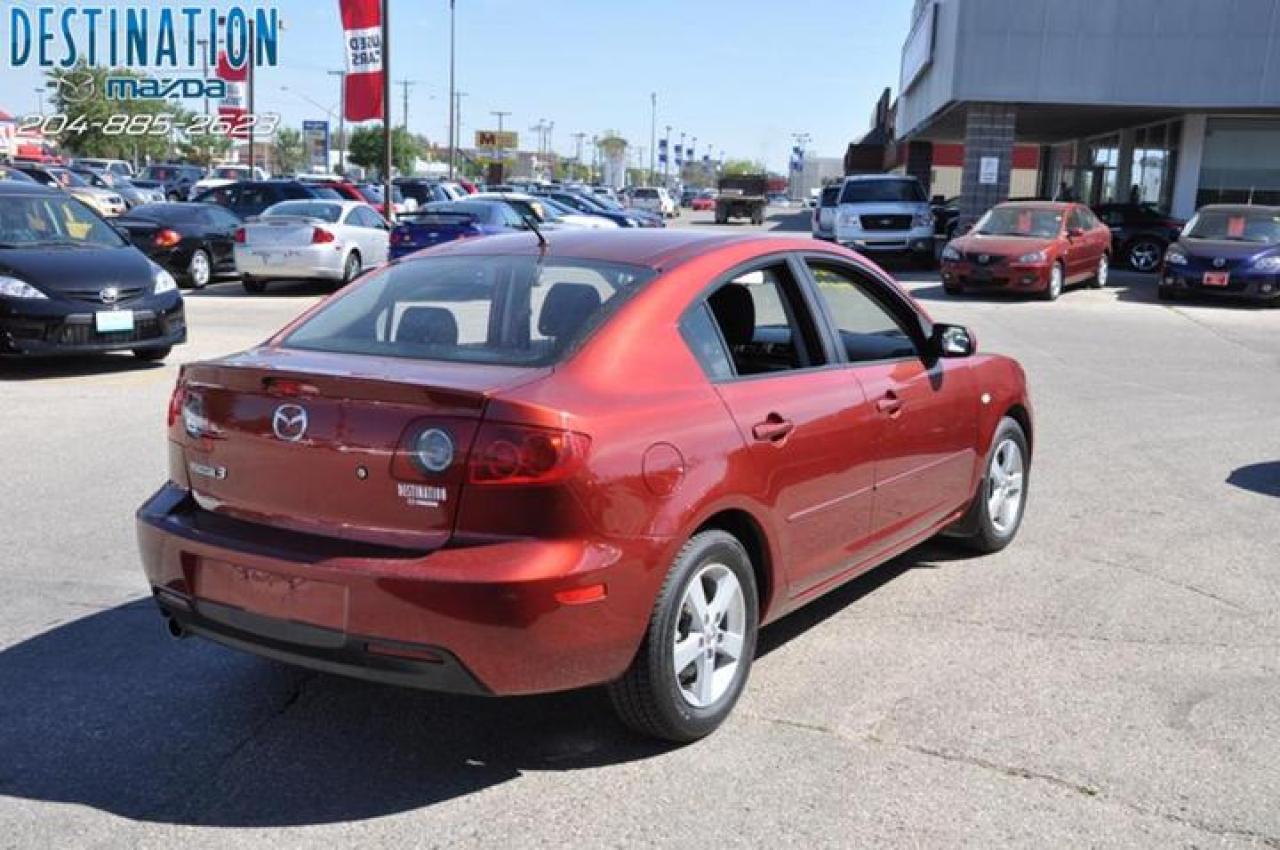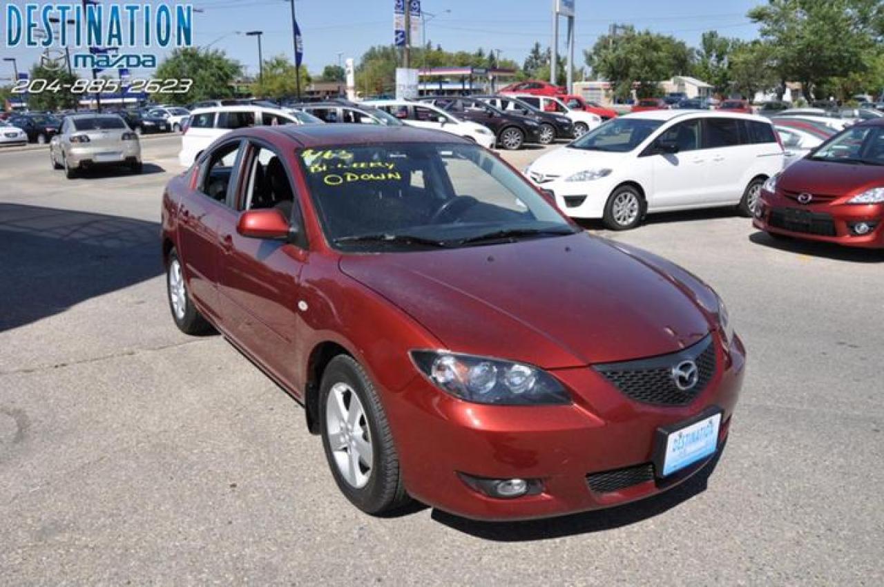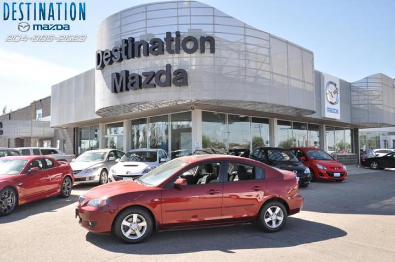 This vehicle is at Destination Mazda so call 1-888-790-7530 or visit us at 3690 Portage Ave! 2006 Mazda 3 GS comfort package that includes Sunroof, all the power options and more. This car is deep red in color and has Aluminum wheels with new tires. Only 65000 ks on this one and the price is $14990. I must say this car is very clean and is a one owner lease return that is like new. Very nice car! The perfect purchase experience stars when you call Destination Mazda