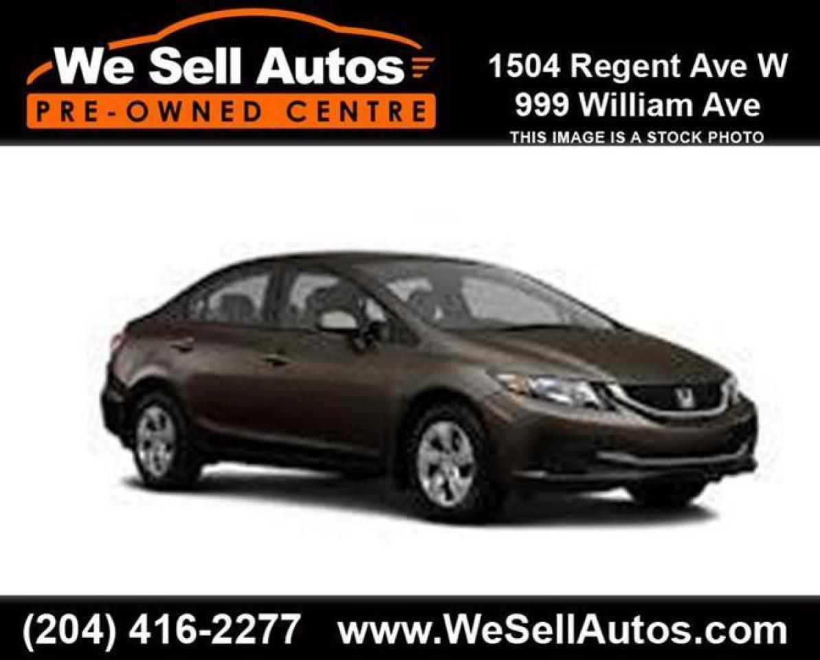 *Cash $16888.00. Finance $15888.00. At We Sell Autos we have over 400 pre-owned vehicles, and we guarantee the lowest prices in Manitoba!!! This 2013 Honda Civic LX is equipped with Heated Seats, Bluetooth, Steering Wheel Audio Controls, and much more. This vehicle has only been registered in Manitoba. All our vehicles have passed a Manitoba safety inspection and come with a FREE CarProof vehicle history report. Trade-ins welcome. Competitive finance rates with $0 down payment (OAC). View our entire inventory at www.WeSellAutos.com. Or come see us today at 1504 Regent Ave W. To book a test drive call (204) 416-2277. We Sell Autos - A Division of Donvito Automotive Group. Price does not include GST & PST. Permit #4612.
