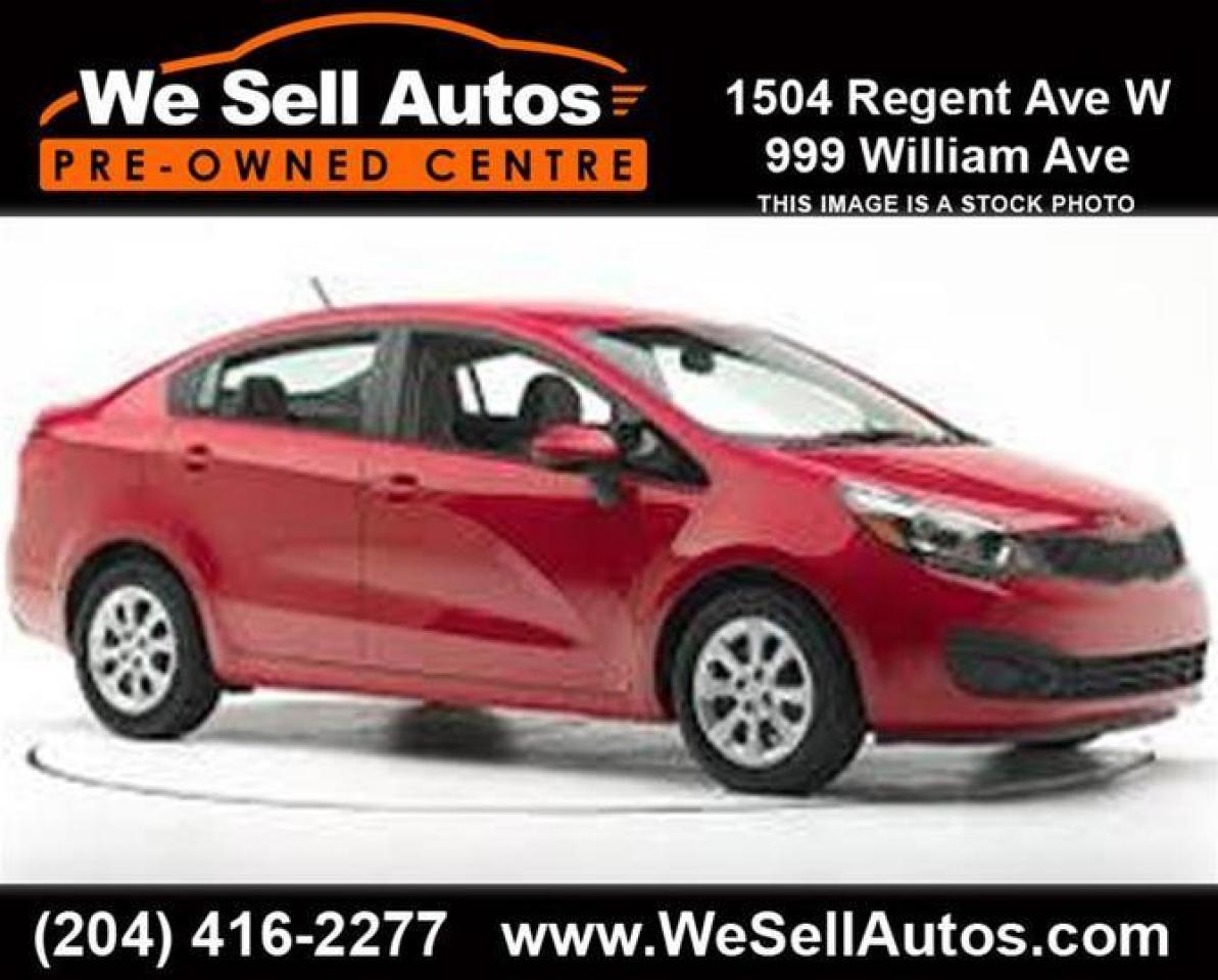 *Cash $13188.00. Finance $12188.00. At We Sell Autos we have over 400 pre-owned vehicles, and we guarantee the lowest prices in Manitoba!!! This 2013 Kia Rio LX Plus is equipped with Heated Seats, Bluetooth, USB, and much more. This vehicle has only been registered in Manitoba. All our vehicles have passed a Manitoba safety inspection and come with a FREE CarProof vehicle history report. Trade-ins welcome. Competitive finance rates with $0 down payment (OAC). View our entire inventory at www.WeSellAutos.com. Or come see us today at 1504 Regent Ave W. To book a test drive call (204) 416-2277. We Sell Autos - A Division of Donvito Automotive Group. Price does not include GST & PST. Permit #4612.
