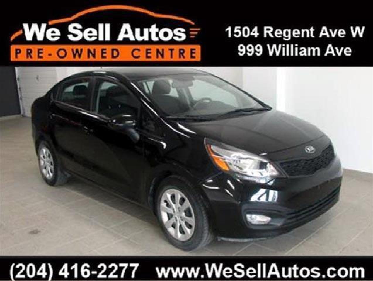 *Cash $13388.00. Finance $12388.00. At We Sell Autos we have over 400 pre-owned vehicles, and we guarantee the lowest prices in Manitoba!!! This 2013 Kia Rio LX Plus is equipped with Heated Seats, Bluetooth, USB, and much more. This vehicle has only been registered in Manitoba. All our vehicles have passed a Manitoba safety inspection and come with a FREE CarProof vehicle history report. Trade-ins welcome. Competitive finance rates with $0 down payment (OAC). View our entire inventory at www.WeSellAutos.com. Or come see us today at 1504 Regent Ave W. To book a test drive call (204) 416-2277. We Sell Autos - A Division of Donvito Automotive Group. Price does not include GST & PST. Permit #4612.