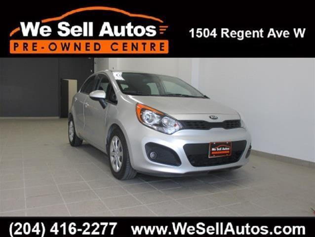 *Cash $13488.00. Finance $12488.00. At We Sell Autos we have over 400 pre-owned vehicles, and we guarantee the lowest prices in Manitoba!!! This 2013 Kia Rio 5 LX Plus is equipped with Heated Seats, Bluetooth, USB, and much more. This vehicle has only been registered in Manitoba. All our vehicles have passed a Manitoba safety inspection and come with a FREE CarProof vehicle history report. Trade-ins welcome. Competitive finance rates with $0 down payment (OAC). View our entire inventory at www.WeSellAutos.com. Or come see us today at 1504 Regent Ave W. To book a test drive call (204) 416-2277. We Sell Autos - A Division of Donvito Automotive Group. Price does not include GST & PST. Permit #4612.