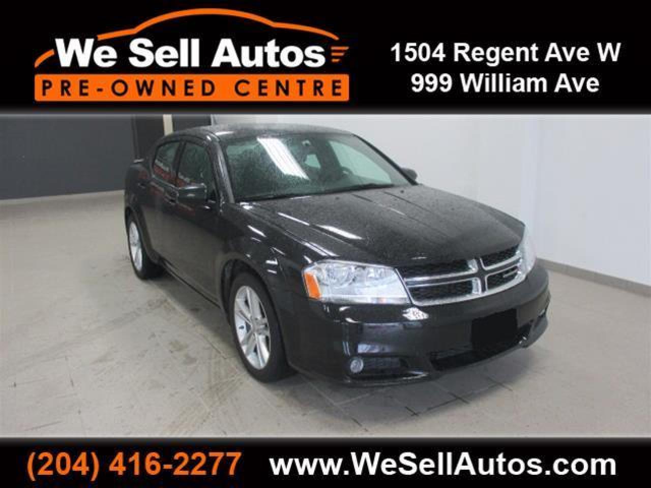 *Cash $16588.00. Finance $15588.00. At We Sell Autos we have over 400 pre-owned vehicles, and we guarantee the lowest prices in Manitoba!!! This 2014 Dodge Avenger SXT is equipped with Heated Seats, Alloy Wheels, and much more. This vehicle has only been registered in Manitoba. All our vehicles have passed a Manitoba safety inspection and come with a FREE CarProof vehicle history report. Trade-ins welcome. Competitive finance rates with $0 down payment (OAC). View our entire inventory at www.WeSellAutos.com. Or come see us today at 1504 Regent Ave W. To book a test drive call (204) 416-2277. We Sell Autos - A Division of Donvito Automotive Group. Price does not include GST & PST. Dealer Permit #4612