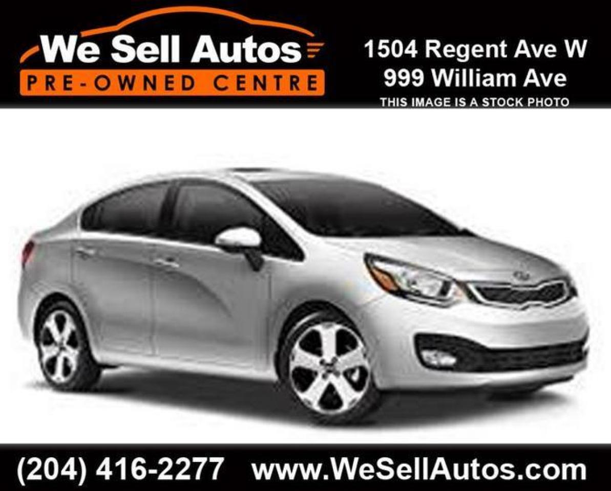 *Cash $16988.00. Finance $15988.00. At We Sell Autos we have over 400 pre-owned vehicles, and we guarantee the lowest prices in Manitoba!!! This 2014 Kia Rio SX is equipped with Heated Seats, Bluetooth, Alloy Wheels, and much more. This vehicle has only been registered in Manitoba. All our vehicles have passed a Manitoba safety inspection and come with a FREE CarProof vehicle history report. Trade-ins welcome. Competitive finance rates with $0 down payment (OAC). View our entire inventory at www.WeSellAutos.com. Or come see us today at 1504 Regent Ave W. To book a test drive call (204) 416-2277. We Sell Autos - A Division of Donvito Automotive Group. Price does not include GST & PST. Dealer Permit #4612