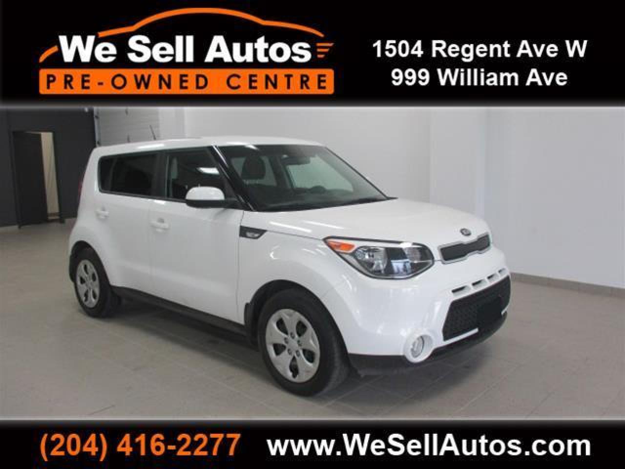 *Cash $17988.00. Finance $16988.00. At We Sell Autos we have over 400 pre-owned vehicles, and we guarantee the lowest prices in Manitoba!!! This 2014 Kia Soul LX is equipped with Power Windows, Bluetooth, USB, and much more. This vehicle has only been registered in Manitoba. All our vehicles have passed a Manitoba safety inspection and come with a FREE CarProof vehicle history report. Trade-ins welcome. Competitive finance rates with $0 down payment (OAC). View our entire inventory at www.WeSellAutos.com. Or come see us today at 1504 Regent Ave W. To book a test drive call (204) 416-2277. We Sell Autos - A Division of Donvito Automotive Group. Price does not include GST & PST. Dealer Permit #4612