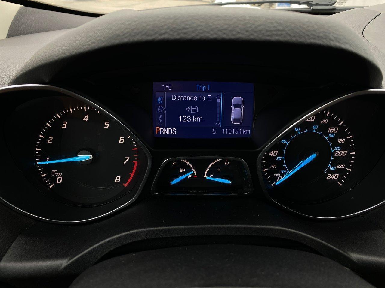 SE trim adds 1.6L EcoBoost four-cylinder engine, 17-inch alloy wheels, rear seat armrest with cupholders, compass and outside temperature display, additional 110V outlet, body colour door handles, automatic headlamps, Ford SYNC, satellite radio, 6-way manual driver's seat, heated front seats, black upper grille with chrome bar, chrome beltline molding, fog lights, dual chrome exhaust tips, and SecuriCode keyless entry keypad.