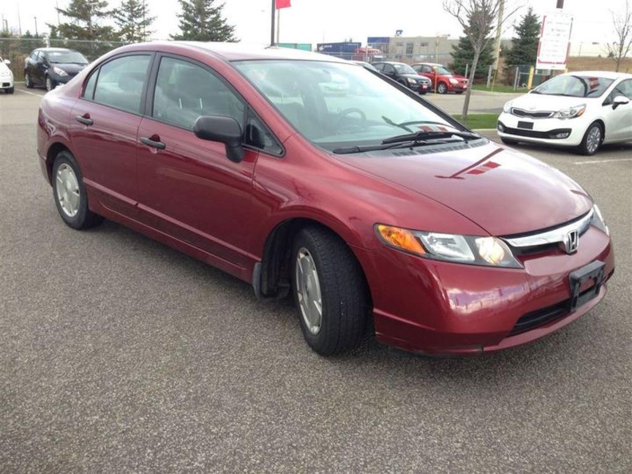 AFFORDABLE AND RELIABLE ! This 2008 Honda Civic DX-G is a local trade In and has been reconditioned and detailed for its new home. Equipped with a 5 speed manual transmission, power windows and locks, A/C , and remote entry this civic offers great fuel economy at an affordable price. At Bay City Kia the price you see is the price you pay, No hidden fees, No stories and No surprises, Just a reliable vehicle at the right price. Price is plus HST and license. Call Today to schedule a test drive at 705-739-8020