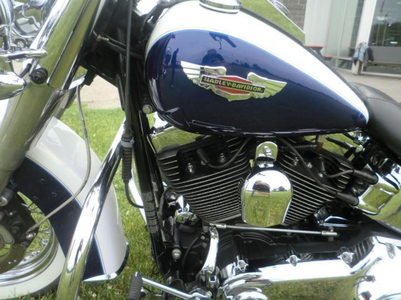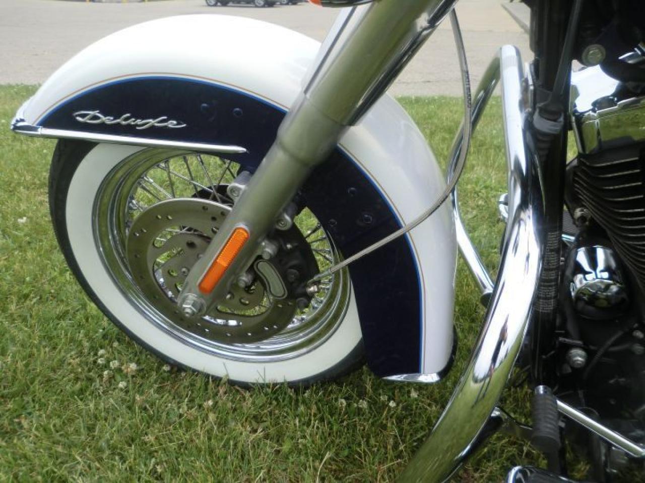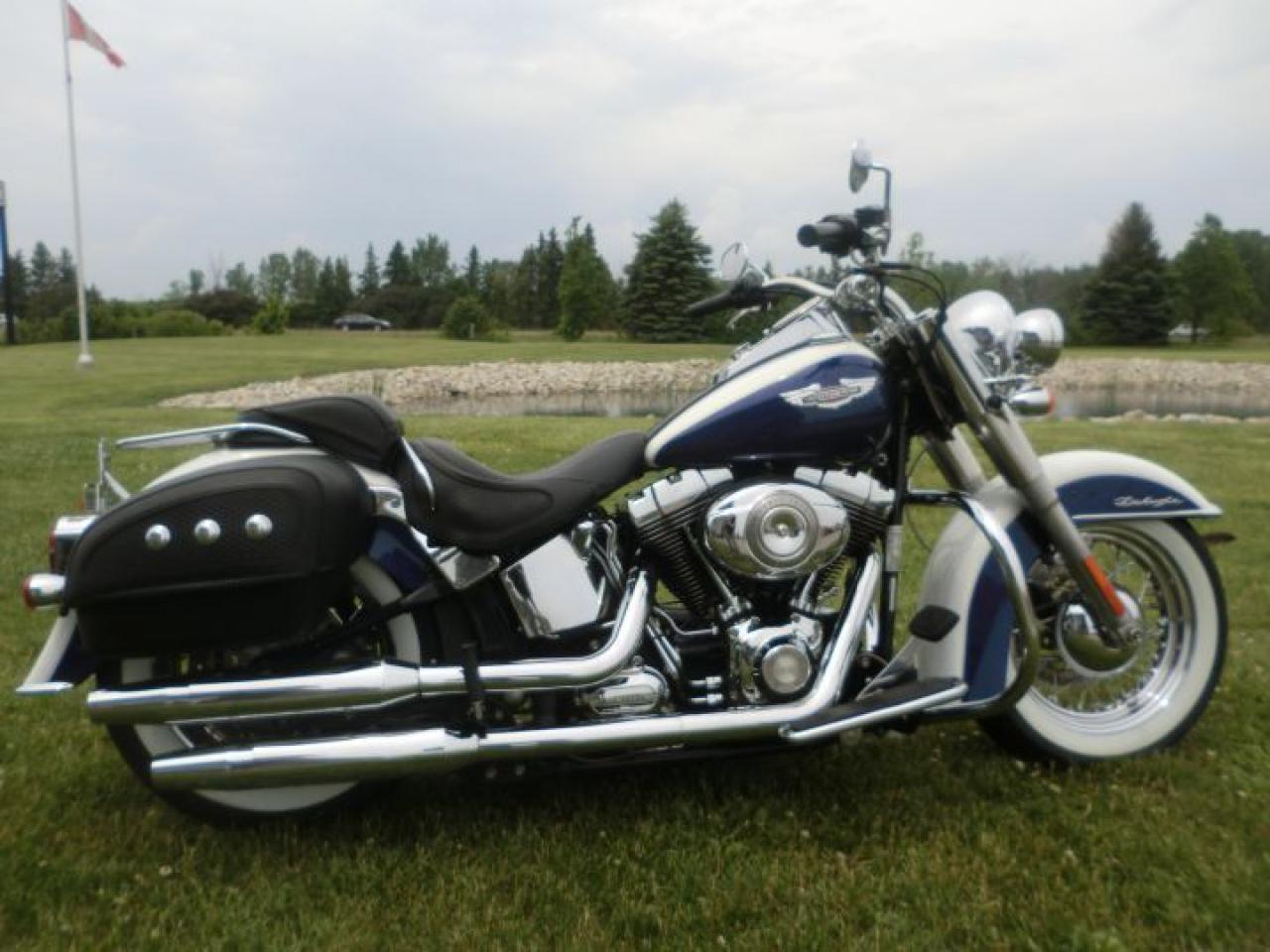 Beautiful Softail Deluxe in White Gold Pearl and Cobalt Blue ! Detachable Deluxe windshied, Deluxe lockable saddlle bags, passenger pillion,luggage rack. 96 cubic inch and six speed !! H-D LOW INTEREST RATES ..!! OUR PRICES FOLLOW THE OMVIC REGULATIONS OF FULL DISCLOSURE IN PRICING NO HIDDEN COSTS OR FEES PRICE SHOWN INCLUDES THE BASIC BIKE PRICE AND OPTIONS, TIRE FEE,OMVIC FEE,ADMINISTRATION FEE.. Prices ARE SUBJECT TO HST !!