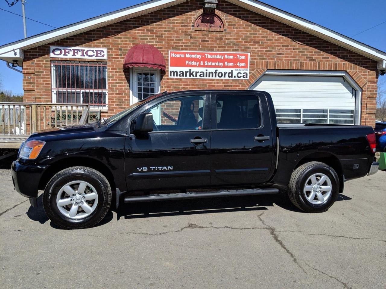 Hard to find Nissan Titan crew cab pickup with 4x4 and 5.6 litre V8! This clean beauty has a back up camera, blue tooth and a power rear sliding window. Â