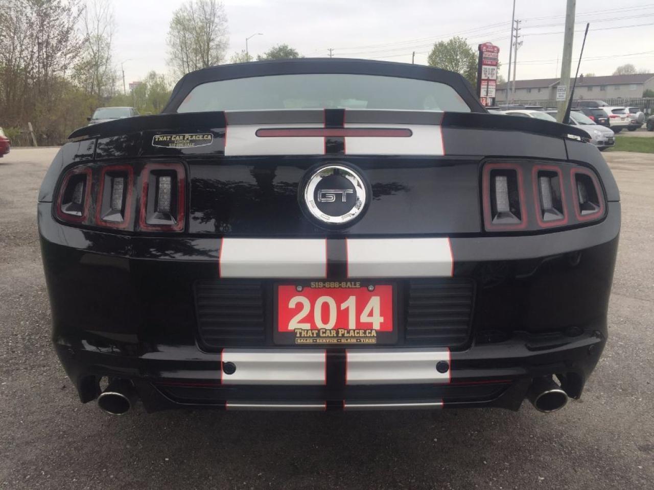 This 2014 Ford Mustang GT Convertible is one sweet V8. Comes with HEATED LEATHER SEATS, BLUETOOTH, Microsoft Sync, STRIPE PACKAGE, HID headlights, STEERING WHEEL AUDIO CONTROLS, AUX connectivity for your IPHONE/IPOD or ANDROID music playing device and much more. WON'T LAST LONG!!! This vehicle was previously used as a daily rental. Call 1-519-686-7253 or Visit 443 Exeter Rd. That Car Place.