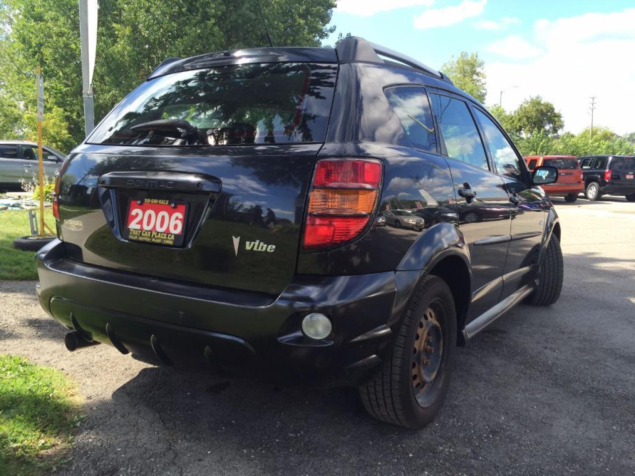 This 2006 Pontiac Vibe hatchback is nicely equipped and PRICED TO SELL. Comes with a great set of tires (lots of tread left), spacious interior, this manual transmission fuel effecient car has lots of life left and is ready to be driven of our lot. Comes with Power Windows/Doors/Locks, CD/Cassette Player with AM/FM radio and comfortable seats. Call 1-519-686-7253 or Visit 443 Exeter Rd. That Car Place.