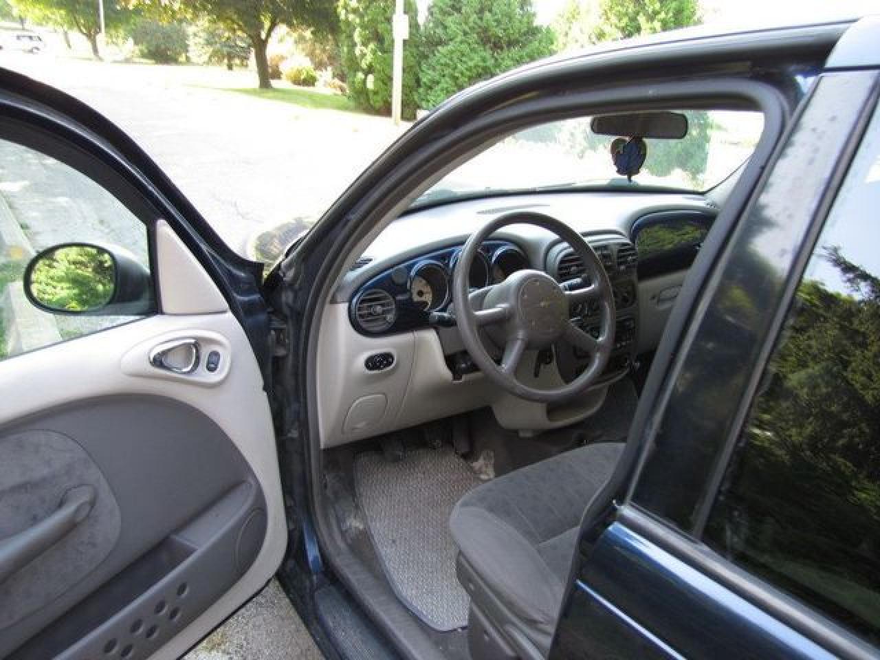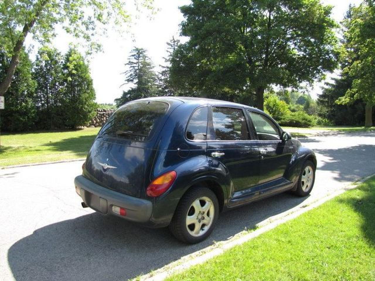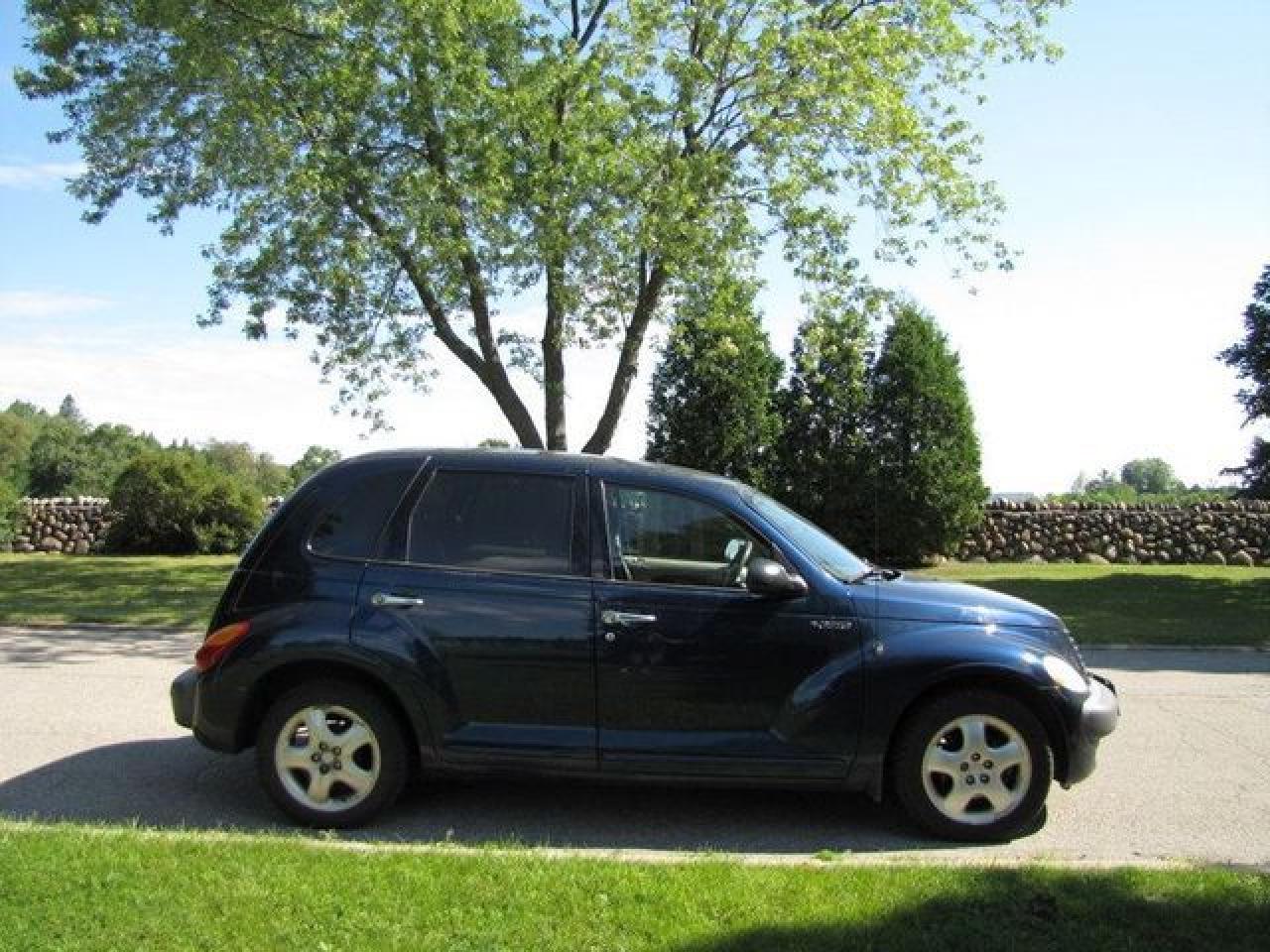 This 2002 Chrysler PT Cruiser GREAT SHAPE!! AS TRADED $2995! Hatchback features a 2.4L L4 SFI DOHC 16V 4 cyl Gasoline engine. It is equipped with a Manual transmission. The vehicle is Blue with a Black Cloth interior. Over 400 Better used cars in stock!! PLEASE CALL 1-866-348-8146 A+ Better Business Bureau rating!! Voted Guelph's Favourite dealer 2004-2009!! Since 1961. Taxes, licensing and $5.00 OMVIC fee are extra. Better pictures at www.shopwilsons.com .WE ARE SELLING THIS ONE "AS IS" and we are required by law to state, even if this vehicle is perfect: “Vehicle is not in roadworthy condition, not certified and not e-tested.” THIS VEHICLE MAY EVEN HAVE MANUFACTURERS WARRANTY, AND IT MAY BE THE CAR FOR YOU, AT A PRICE YOU CAN AFFORD!!! SAFETY-E-TEST AVAILABLE FOR $995.00!! - This Chrysler is in Good overall exterior condition, Good overall interior condition, Cloth seats - Air Conditioning, Cruise Control, Power Steering, Power Windows, Power Door Locks, Power Mirrors, Clock, Tachometer, Digital Info Center, Driver Airbag, Passenger Airbag, Keyless Entry, Rear Defogger, Intermittent Wipers, AM-FM, Cassette, CD Player, Aluminum Wheels, Cloth Interior Surface - Contact The Internet Department at 866-738-6045 or leads@markwilsonsbetterusedcarstc.dealer.com for more information. -