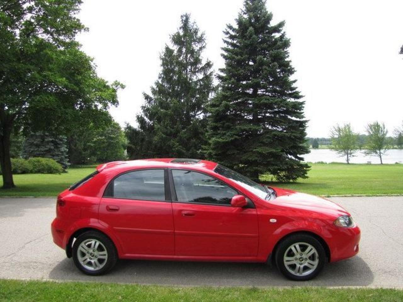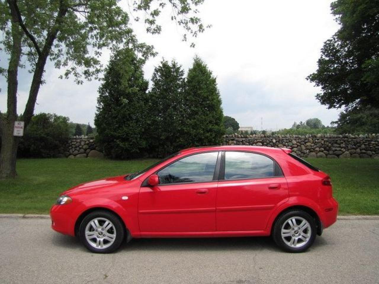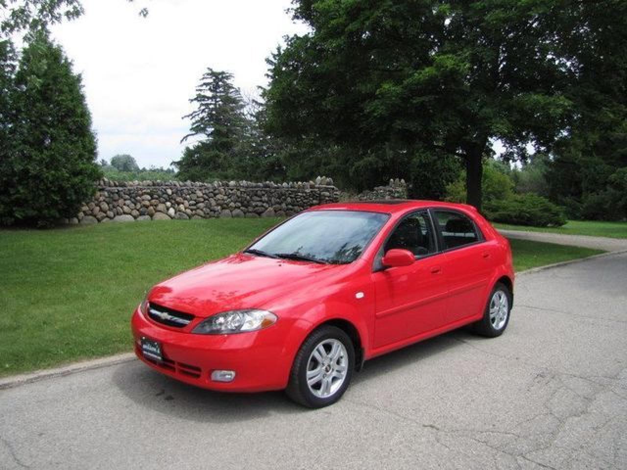 This 2006 Chevrolet Optra 4dr 5 LT HATCHBACK!! SUNROOF!! XENONS!! NEW TIRES!! Hatchback features a 2.0L L4 MPI 4 cyl Gasoline engine. It is equipped with a Automatic transmission. The vehicle is Red with a CHARCOAL Cloth interior. It is offered with the remaining factory warranty. Over 400 BETTER used cars in stock!! PLEASE CALL 1-866-348-8146 5.99% Financing + no payments up to 6 months available on approved credit!! Free Trial Exchange!! A+ Better Business Bureau rating!! Voted Guelph's Favourite dealer 2004-2009!! Since 1961. Taxes, licensing, and $5.00 OMVIC fee are extra. Call for details on our Free Trial Exchange! Thank you for considering Wilsons!!! Please call 1-866-348-8146. - This Chevrolet is in Excellent overall exterior condition, Excellent overall interior condition, Cloth seats - Air Conditioning, Cruise Control, Power Steering, Power Windows, Power Door Locks, Power Mirrors, Leather Steering Wheel, Clock, Tachometer, Digital Info Center, Tilt Steering Wheel, Sunroof, Driver Airbag, Passenger Airbag, Keyless Entry, ABS Brakes, Rear Defogger, Intermittent Wipers, AM-FM, CD Player, Alloy Wheels, Cloth Interior Surface, Xenon - Contact The Internet Department at 866-738-6045 or leads@markwilsonsbetterusedcarstc.dealer.com for more information. -