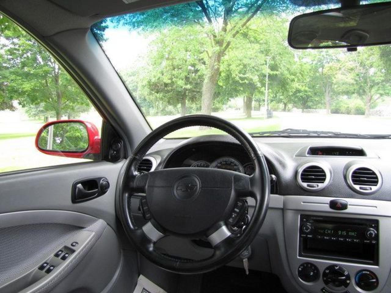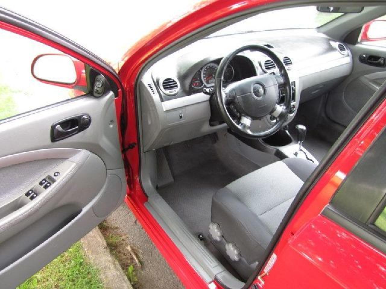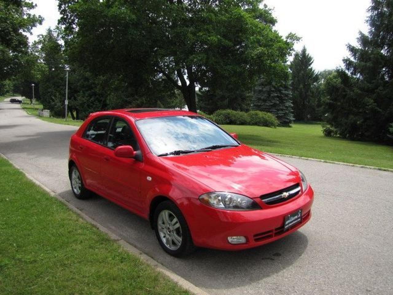 This 2006 Chevrolet Optra 4dr 5 LT HATCHBACK!! SUNROOF!! XENONS!! NEW TIRES!! Hatchback features a 2.0L L4 MPI 4 cyl Gasoline engine. It is equipped with a Automatic transmission. The vehicle is Red with a CHARCOAL Cloth interior. It is offered with the remaining factory warranty. Over 400 BETTER used cars in stock!! PLEASE CALL 1-866-348-8146 5.99% Financing + no payments up to 6 months available on approved credit!! Free Trial Exchange!! A+ Better Business Bureau rating!! Voted Guelph's Favourite dealer 2004-2009!! Since 1961. Taxes, licensing, and $5.00 OMVIC fee are extra. Call for details on our Free Trial Exchange! Thank you for considering Wilsons!!! Please call 1-866-348-8146. - This Chevrolet is in Excellent overall exterior condition, Excellent overall interior condition, Cloth seats - Air Conditioning, Cruise Control, Power Steering, Power Windows, Power Door Locks, Power Mirrors, Leather Steering Wheel, Clock, Tachometer, Digital Info Center, Tilt Steering Wheel, Sunroof, Driver Airbag, Passenger Airbag, Keyless Entry, ABS Brakes, Rear Defogger, Intermittent Wipers, AM-FM, CD Player, Alloy Wheels, Cloth Interior Surface, Xenon - Contact The Internet Department at 866-738-6045 or leads@markwilsonsbetterusedcarstc.dealer.com for more information. -