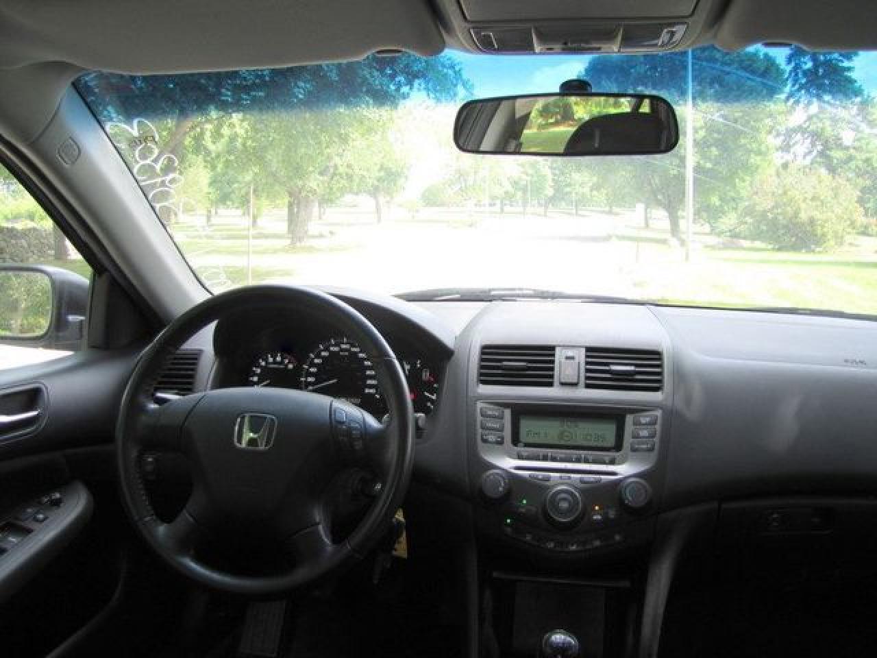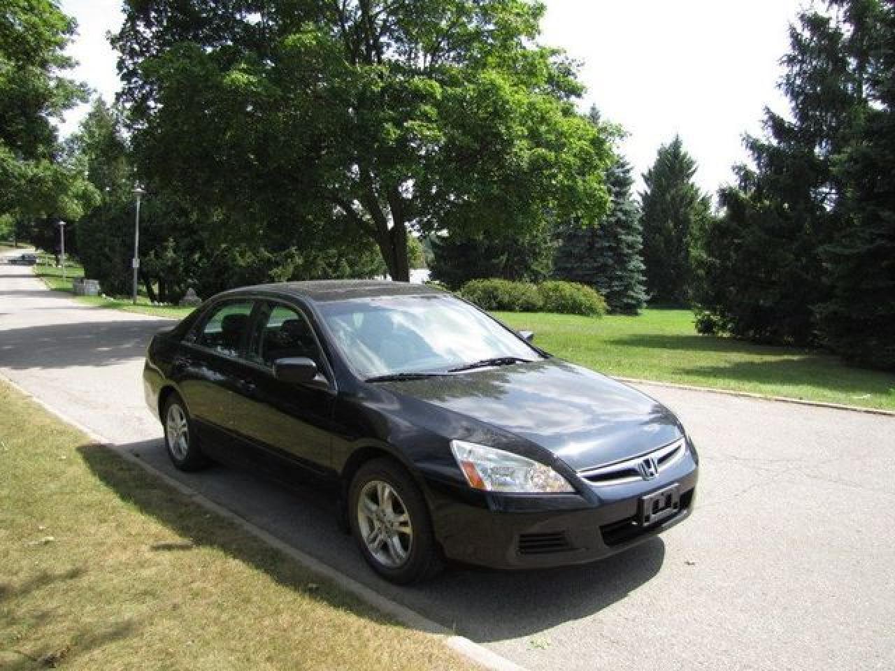 This 2006 Honda Accord 4dr SE SUNROOF!! 4 NEW TIRES!! HONDA LEASE RETN! Sedan features a 2.4L L4 PFI DOHC 16V 4 cyl Gasoline engine. It is equipped with a 5 Speed Manual transmission. The vehicle is Black with a Black Cloth interior. It is offered with the remaining factory warranty. Over 400 BETTER used cars in stock!! PLEASE CALL 1-866-348-8146 5.99% Financing + no payments up to 6 months available on approved credit!! Free Trial Exchange!! A+ Better Business Bureau rating!! Voted Guelph's Favourite dealer 2004-2009!! Since 1961. Taxes, licensing, and $5.00 OMVIC fee are extra. Call for details on our Free Trial Exchange! Thank you for considering Wilsons!!! Please call 1-866-348-8146. - This Honda is in Excellent overall exterior condition, Excellent overall interior condition, Cloth seats - Air Conditioning, Cruise Control, Power Steering, Power Windows, Power Door Locks, Power Mirrors, Clock, Tachometer, Digital Info Center, Tilt Steering Wheel, Telescoping Steering Wheel, Sunroof, Driver Airbag, Passenger Airbag, Keyless Entry, ABS Brakes, Rear Defogger, Intermittent Wipers, AM-FM, CD Player, Alloy Wheels, Cloth Interior Surface - Contact The Internet Department at 866-738-6045 or leads@markwilsonsbetterusedcarstc.dealer.com for more information. -
