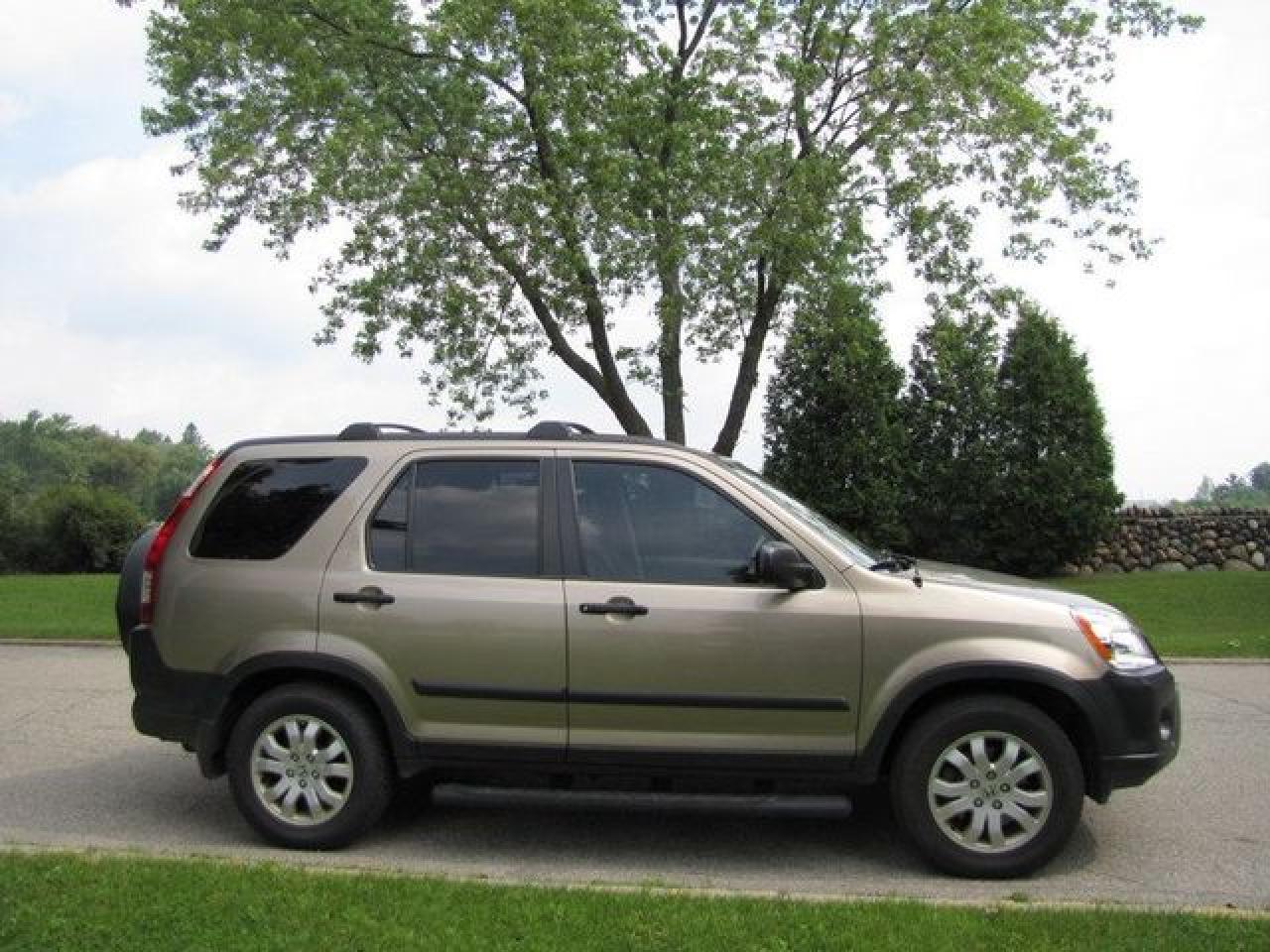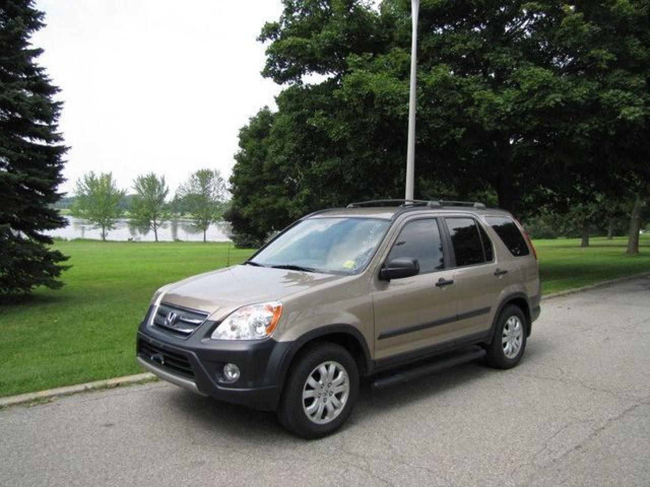This 2006 Honda CR-V 4dr LX AWD!!! SIDEBARS!! HONDA LEASE RETURN!! SUV features a 2.4L L4 PFI DOHC 4cyl Gasoline engine. It is equipped with a Automatic transmission. The vehicle is BEIGE with a BEIGE Cloth interior. Over 400 BETTER used cars in stock!! PLEASE CALL 1-866-348-8146 5.99% Financing + no payments up to 6 months available on approved credit!! Free Trial Exchange!! A+ Better Business Bureau rating!! Voted Guelph's Favourite dealer 2004-2009!! Since 1961. Taxes, licensing, and $5.00 OMVIC fee are extra. Call for details on our Free Trial Exchange! Thank you for considering Wilsons!!! Please call 1-866-348-8146. - This Honda is in Excellent overall exterior condition, Excellent overall interior condition, Cloth seats - Air Conditioning, Cruise Control, Power Steering, Power Windows, Power Door Locks, Power Mirrors, Clock, Tachometer, Tilt Steering Wheel, Driver Airbag, Passenger Airbag, Keyless Entry, ABS Brakes, Traction Control, Rear Defogger, Intermittent Wipers, AM-FM, CD Player, Wheels, Cloth Interior Surface - Contact The Internet Department at 866-738-6045 or leads@markwilsonsbetterusedcarstc.dealer.com for more information. -