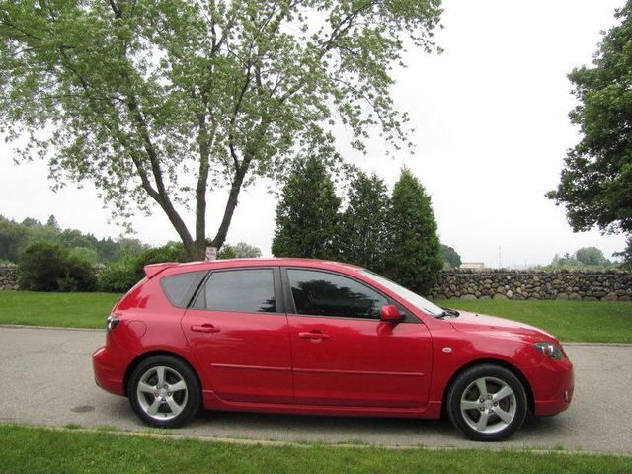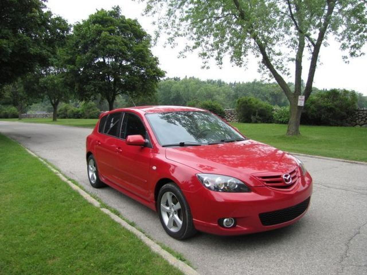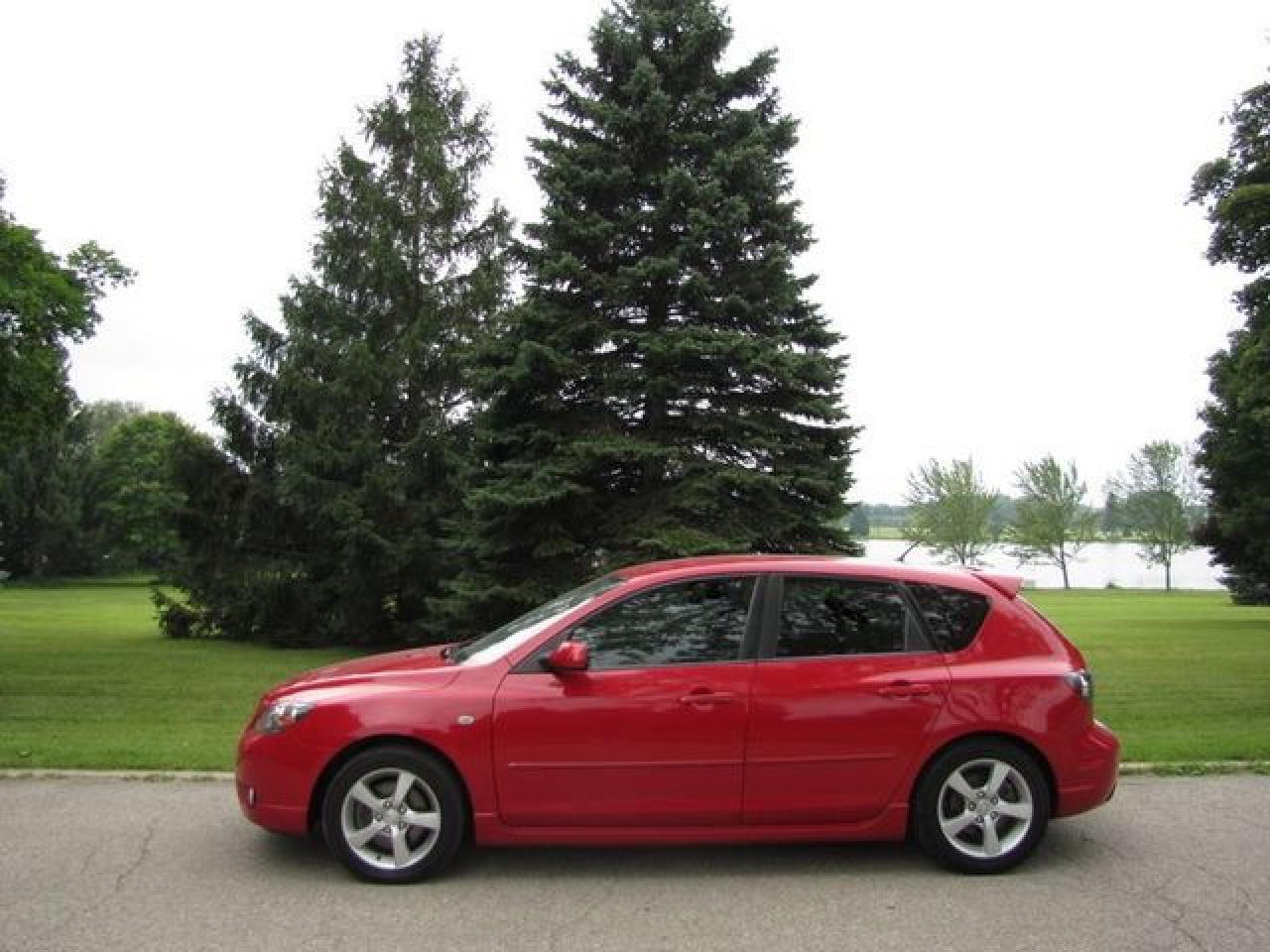 This 2006 Mazda MAZDA3 4dr GS SPORT HATCHBACK SPOILER!! MAZDA LEASE RETURN! Hatchback features a 2.3L L4 DOHC 16V 4 cyl Gasoline engine. It is equipped with a Automatic transmission. The vehicle is Red with a Black Cloth interior. It is offered with the remaining factory warranty. Over 400 BETTER used cars in stock!! PLEASE CALL 1-866-348-8146 5.99% Financing + no payments up to 6 months available on approved credit!! Free Trial Exchange!! A+ Better Business Bureau rating!! Voted Guelph's Favourite dealer 2004-2009!! Since 1961. Taxes, licensing, and $5.00 OMVIC fee are extra. Call for details on our Free Trial Exchange! Thank you for considering Wilsons!!! Please call 1-866-348-8146. - This Mazda is in Excellent overall exterior condition, Excellent overall interior condition, Cloth seats - Air Conditioning, Power Steering, Power Windows, Power Door Locks, Power Mirrors, Clock, Tachometer, Digital Info Center, Tilt Steering Wheel, Telescoping Steering Wheel, Driver Airbag, Passenger Airbag, Keyless Entry, ABS Brakes, Rear Defogger, Intermittent Wipers, AM-FM, Cassette, CD Player, Alloy Wheels, Sport Package, Cloth Interior Surface, Rear Spoiler, Rear Spoiler - Contact The Internet Department at 866-738-6045 or leads@markwilsonsbetterusedcarstc.dealer.com for more information. -