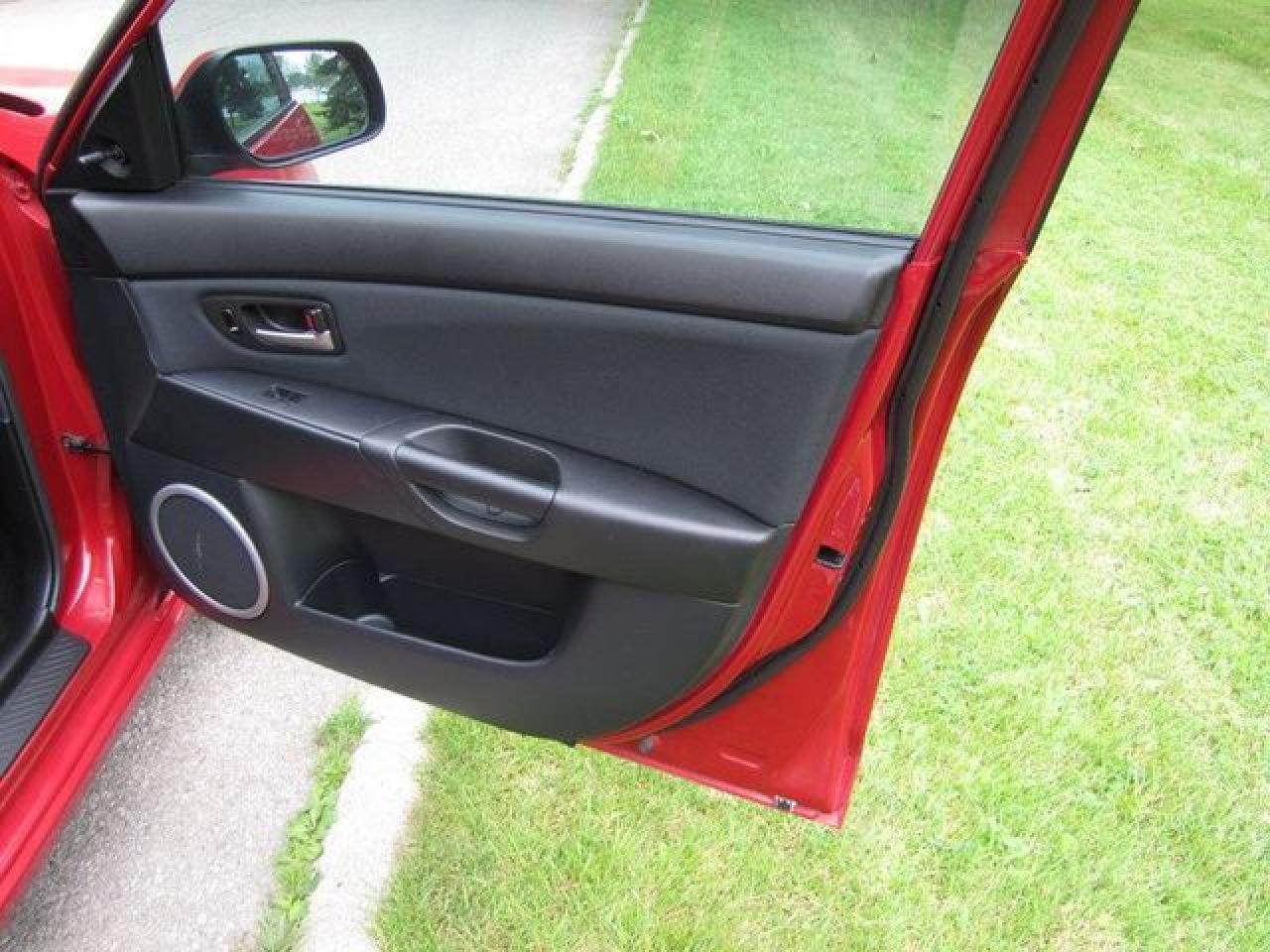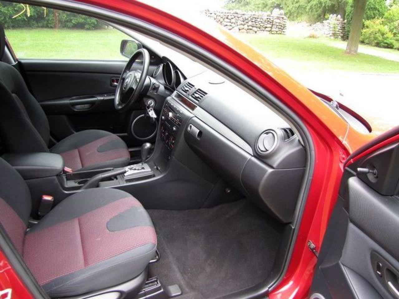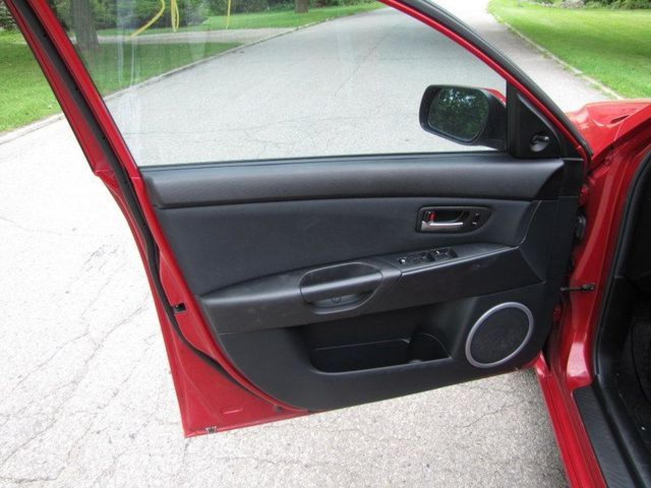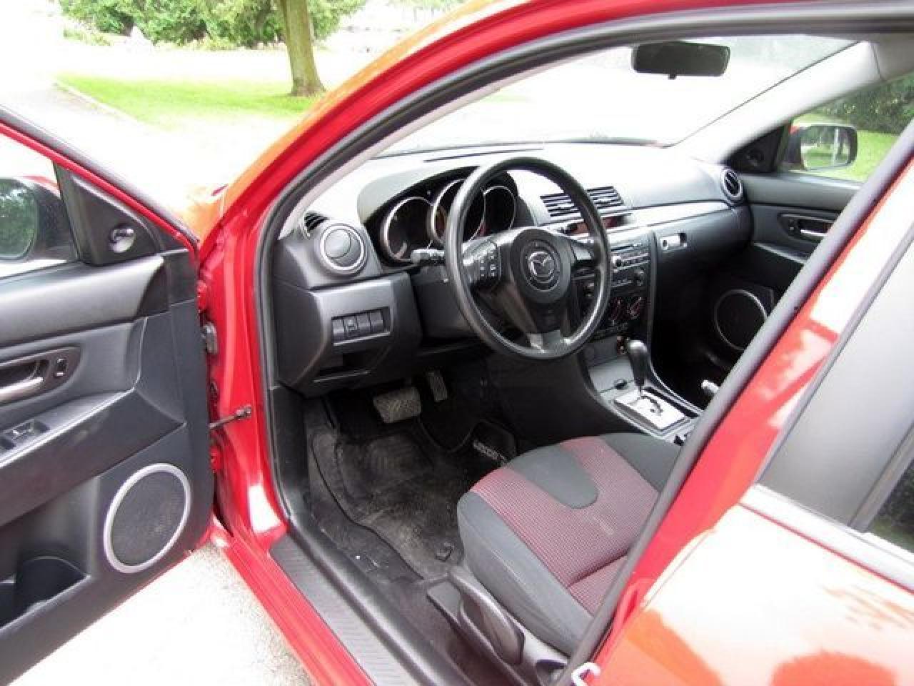 This 2006 Mazda MAZDA3 4dr GS SPORT HATCHBACK SPOILER!! MAZDA LEASE RETURN! Hatchback features a 2.3L L4 DOHC 16V 4 cyl Gasoline engine. It is equipped with a Automatic transmission. The vehicle is Red with a Black Cloth interior. It is offered with the remaining factory warranty. Over 400 BETTER used cars in stock!! PLEASE CALL 1-866-348-8146 5.99% Financing + no payments up to 6 months available on approved credit!! Free Trial Exchange!! A+ Better Business Bureau rating!! Voted Guelph's Favourite dealer 2004-2009!! Since 1961. Taxes, licensing, and $5.00 OMVIC fee are extra. Call for details on our Free Trial Exchange! Thank you for considering Wilsons!!! Please call 1-866-348-8146. - This Mazda is in Excellent overall exterior condition, Excellent overall interior condition, Cloth seats - Air Conditioning, Power Steering, Power Windows, Power Door Locks, Power Mirrors, Clock, Tachometer, Digital Info Center, Tilt Steering Wheel, Telescoping Steering Wheel, Driver Airbag, Passenger Airbag, Keyless Entry, ABS Brakes, Rear Defogger, Intermittent Wipers, AM-FM, Cassette, CD Player, Alloy Wheels, Sport Package, Cloth Interior Surface, Rear Spoiler, Rear Spoiler - Contact The Internet Department at 866-738-6045 or leads@markwilsonsbetterusedcarstc.dealer.com for more information. -