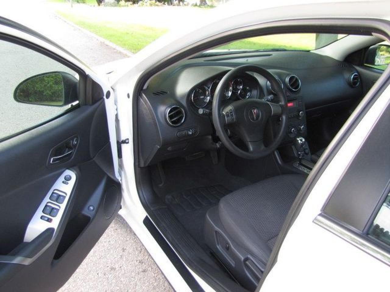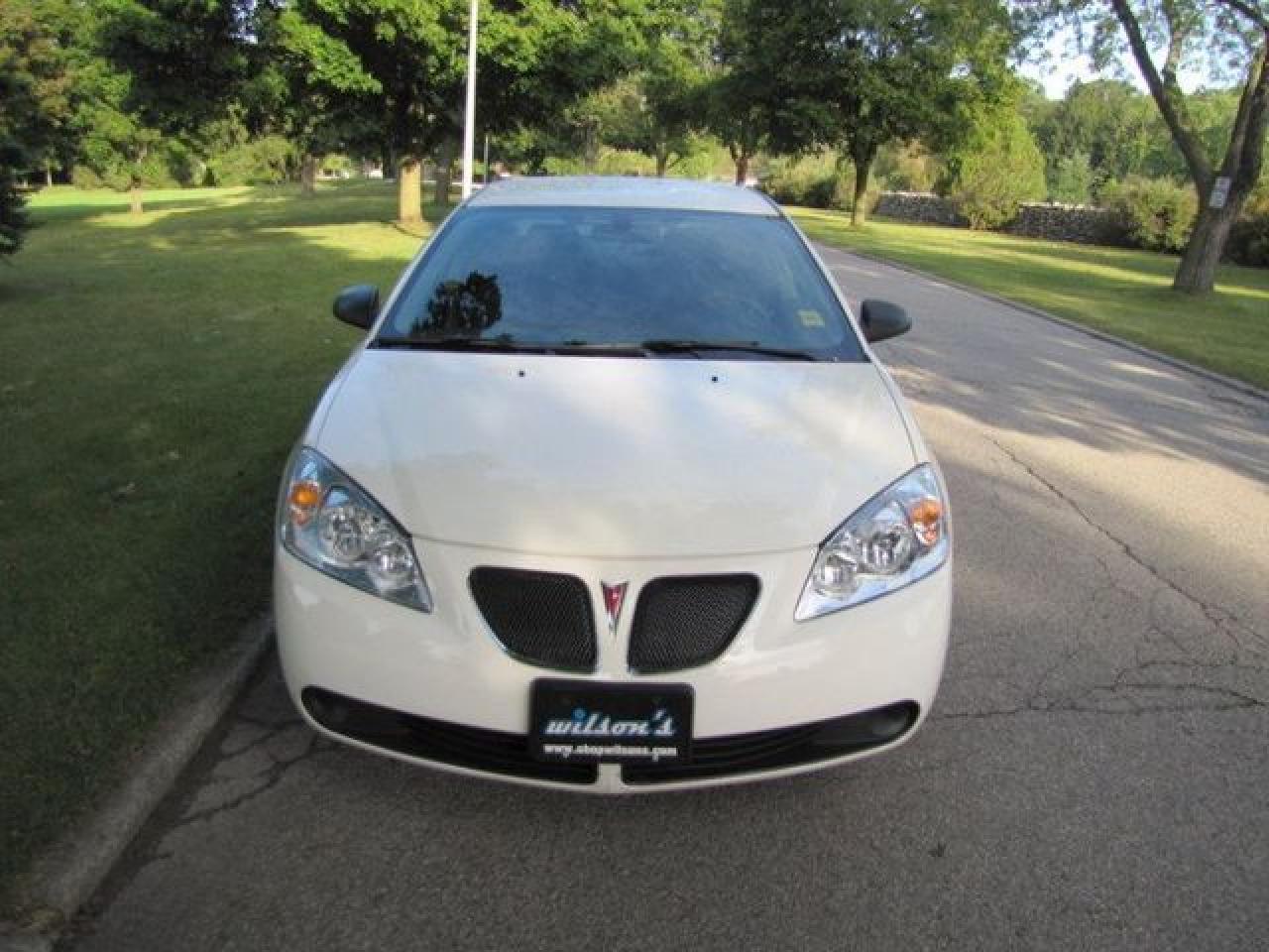 This 2006 Pontiac G6 4dr NEW TIRES!! GM LEASE RETURN!! Sedan features a 2.4L L4 MPI DOHC 4 cyl Gasoline engine. It is equipped with a 4 Speed Automatic transmission. The vehicle is White with a CHARCOAL Cloth interior. It is offered with the remaining factory warranty. Over 400 BETTER used cars in stock!! PLEASE CALL 1-866-348-8146 5.99% Financing + no payments up to 6 months available on approved credit!! Free Trial Exchange!! A+ Better Business Bureau rating!! Voted Guelph's Favourite dealer 2004-2009!! Since 1961. Taxes, licensing, and $5.00 OMVIC fee are extra. Call for details on our Free Trial Exchange! Thank you for considering Wilsons!!! Please call 1-866-348-8146. - This Pontiac is in Excellent overall exterior condition, Excellent overall interior condition, Cloth seats - Air Conditioning, Cruise Control, Power Steering, Power Windows, Power Door Locks, Power Mirrors, Clock, Tachometer, Digital Info Center, Tilt Steering Wheel, Driver Airbag, Passenger Airbag, Keyless Entry, ABS Brakes, Rear Defogger, Intermittent Wipers, AM-FM, CD Player, Alloy Wheels, Cloth Interior Surface - Contact The Internet Department at 866-738-6045 or leads@markwilsonsbetterusedcarstc.dealer.com for more information. -