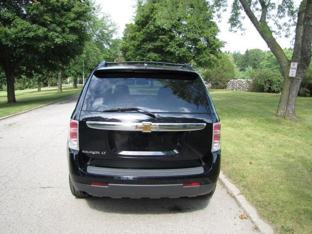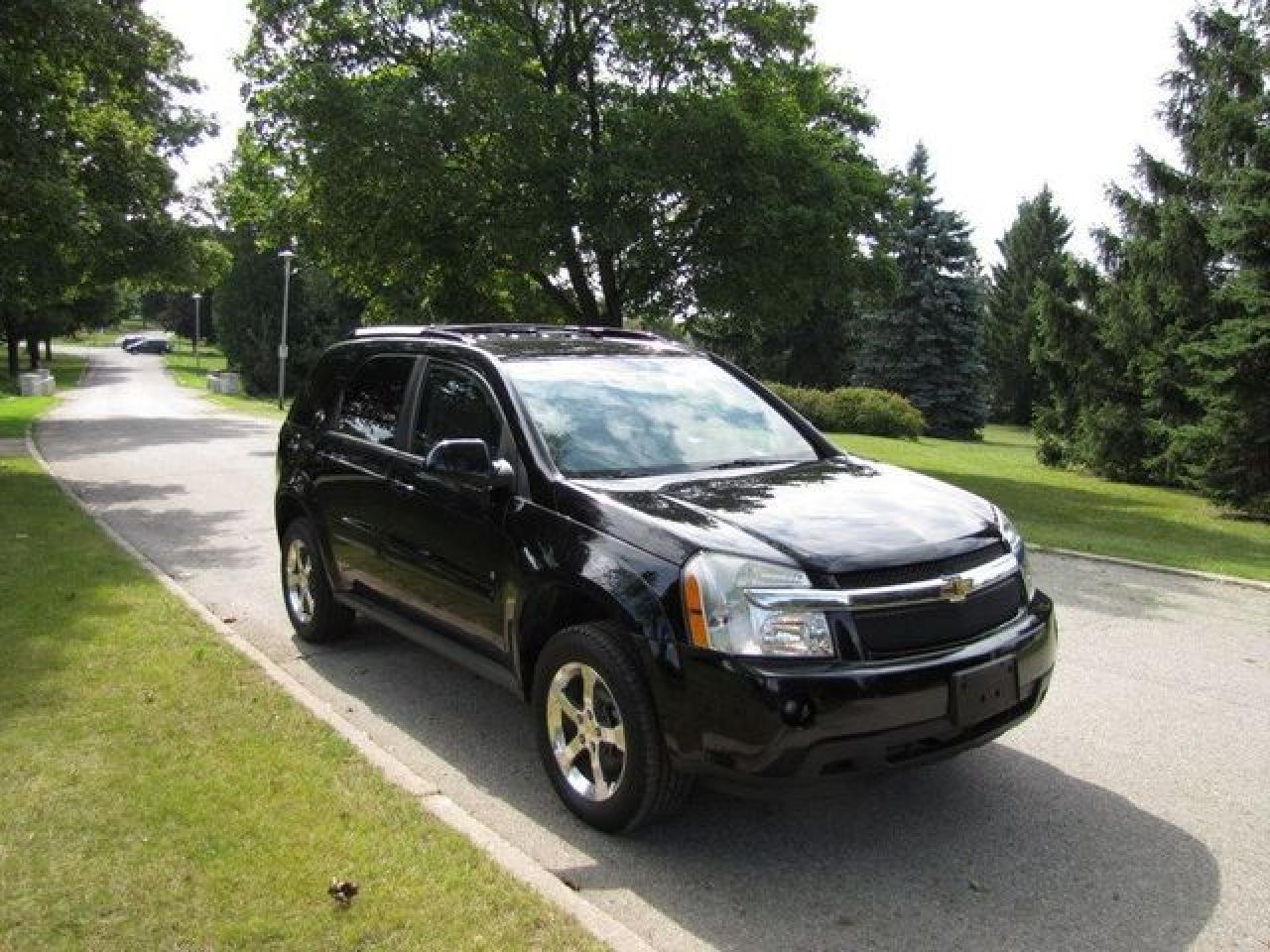 This 2007 Chevrolet Equinox 4dr LT LEATHER!! SUNROOF!! SUV features a 3.4L V6 SFI 6 cyl Gasoline engine. It is equipped with a Automatic transmission. The vehicle is Black with a Grey Leather interior. It is offered with the remaining factory warranty. Over 400 BETTER used cars in stock!! PLEASE CALL 1-866-348-8146 5.74% Financing + no payments up to 6 months available on approved credit!! Free Trial Exchange!! A+ Better Business Bureau rating!! Voted Guelph's Favourite dealer 2004-2009!! Since 1961. Taxes, licensing, and $5.00 OMVIC fee are extra. Call for details on our Free Trial Exchange! Thank you for considering Wilsons!!! Please call 1-866-348-8146. - This Chevrolet is in Excellent overall exterior condition, Excellent overall interior condition, Leather seats - Air Conditioning, Dual Zone Climate Control, Cruise Control, Tinted Windows, Power Steering, Power Windows, Power Door Locks, Power Mirrors, Leather Steering Wheel, Power Drivers Seat, Heated Seat, Clock, Tachometer, Digital Info Center, Tilt Steering Wheel, Sunroof, Driver Airbag, Passenger Airbag, Keyless Entry, ABS Brakes, Traction Control, Rear Defogger, Intermittent Wipers, AM-FM, CD Player, Aluminum Wheels, Leather Interior Surface - Contact The Internet Department at 866-738-6045 or leads@markwilsonsbetterusedcarstc.dealer.com for more information. -
