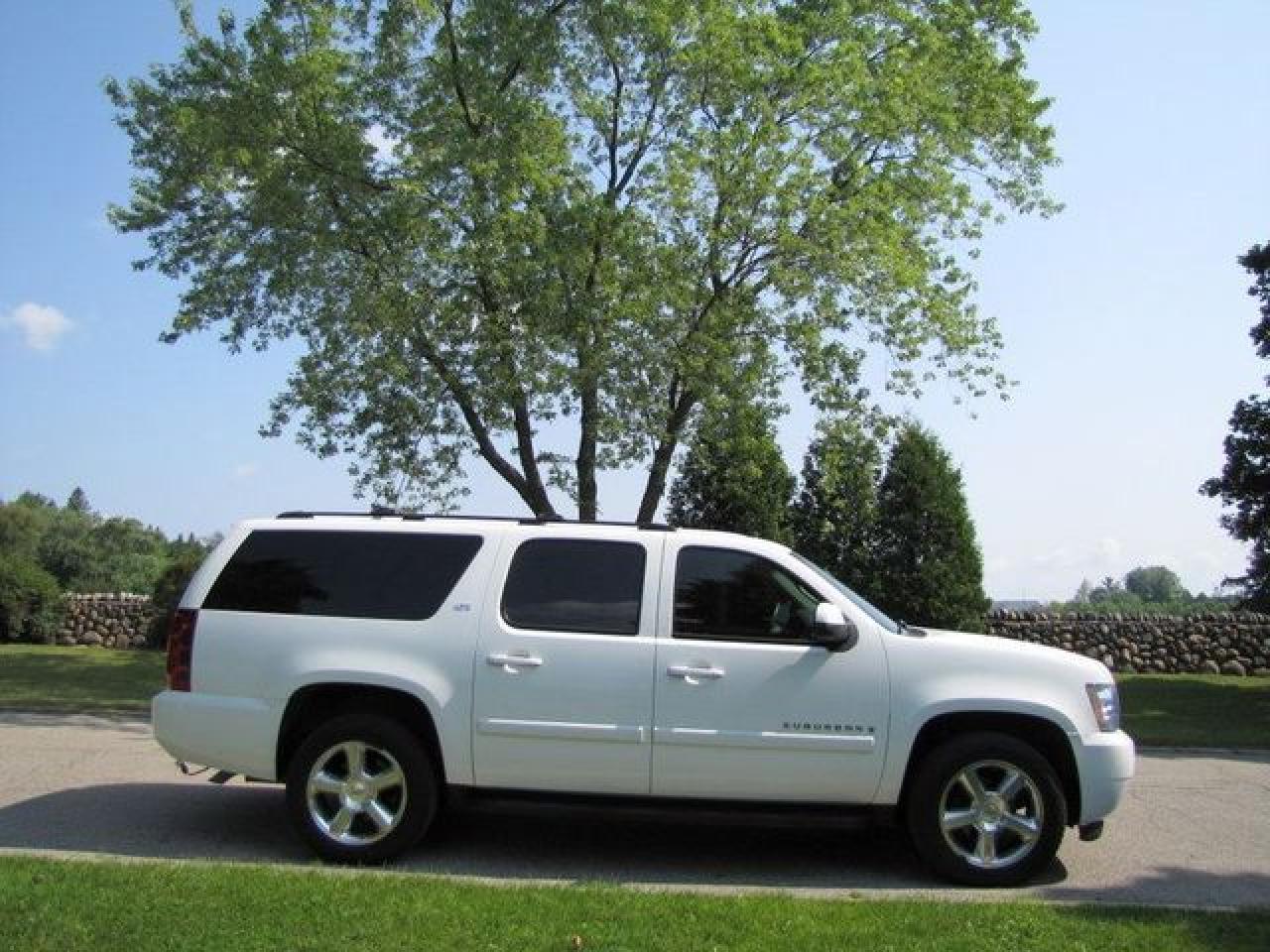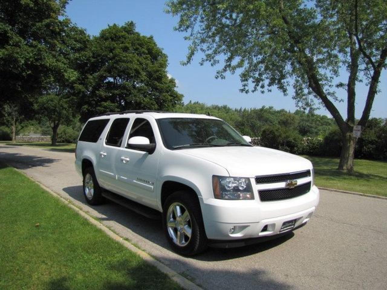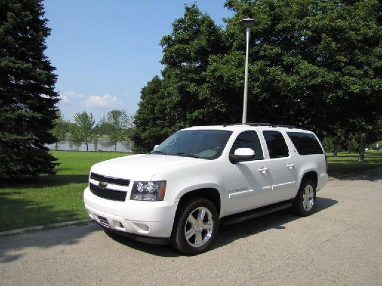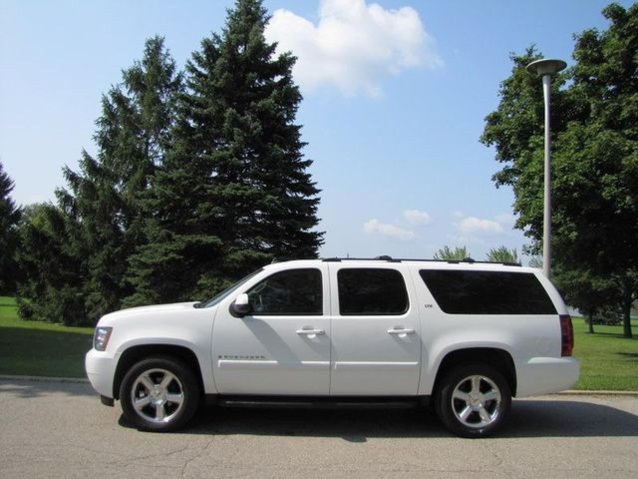 This 2007 Chevrolet Suburban 4dr LTZ AWD!! DVD!! LTHR-SUNROOF!!! GM LEASE RETURN! 4x4 SUV features a 5.3L V8 SFI 8 cyl Gasoline engine. It is equipped with a Automatic transmission. The vehicle is White with a Grey Leather interior. It is offered with the remaining factory warranty. Over 400 BETTER used cars in stock!! PLEASE CALL 1-866-348-8146 5.99% Financing + no payments up to 6 months available on approved credit!! Free Trial Exchange!! A+ Better Business Bureau rating!! Voted Guelph's Favourite dealer 2004-2009!! Since 1961. Taxes, licensing, and $5.00 OMVIC fee are extra. Call for details on our Free Trial Exchange! Thank you for considering Wilsons!!! Please call 1-866-348-8146. - This Chevrolet is in Excellent overall exterior condition, Excellent overall interior condition, Leather seats - Air Conditioning, Climate Control, Dual Zone Climate Control, Cruise Control, Tinted Windows, Power Steering, Power Windows, Power Door Locks, Leather Steering Wheel, Power Drivers Seat, Power Passenger Seat, Heated Seat, Roof Rack, Rear Air Conditioning, Clock, Digital Info Center, Homelink System, Tilt Steering Wheel, Steering Wheel Radio Controls, Sunroof, Driver Airbag, Passenger Airbag, Keyless Entry, ABS Brakes, Traction Control, Rear Defogger, Intermittent Wipers, AM-FM, CD Player, Aluminum Wheels, Leather Interior Surface, Four Wheel Drive - Contact The Internet Department at 866-738-6045 or leads@markwilsonsbetterusedcarstc.dealer.com for more information. -