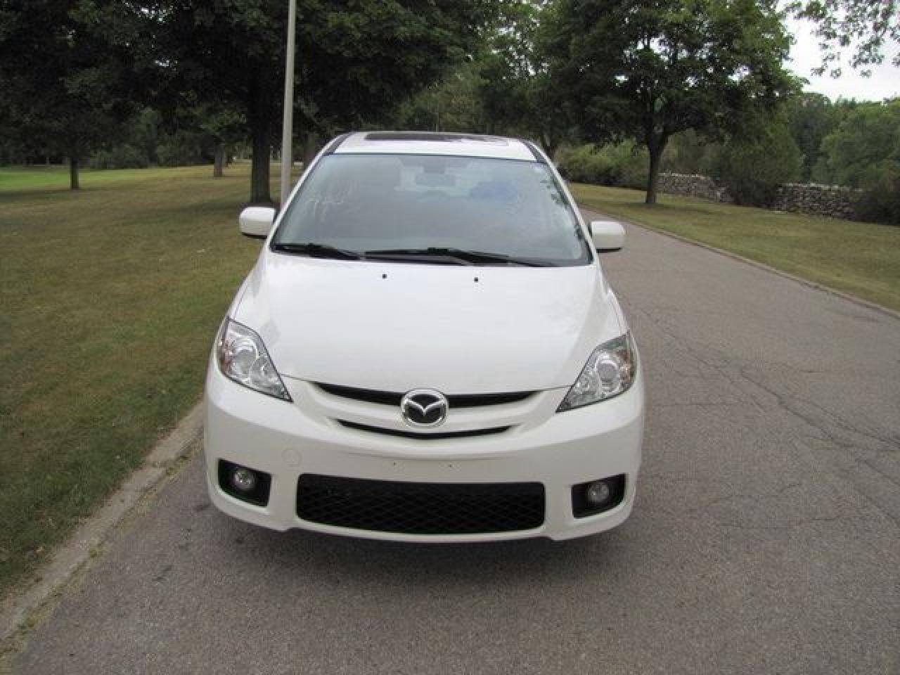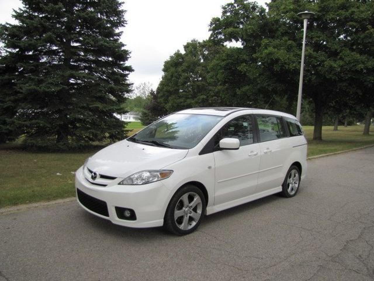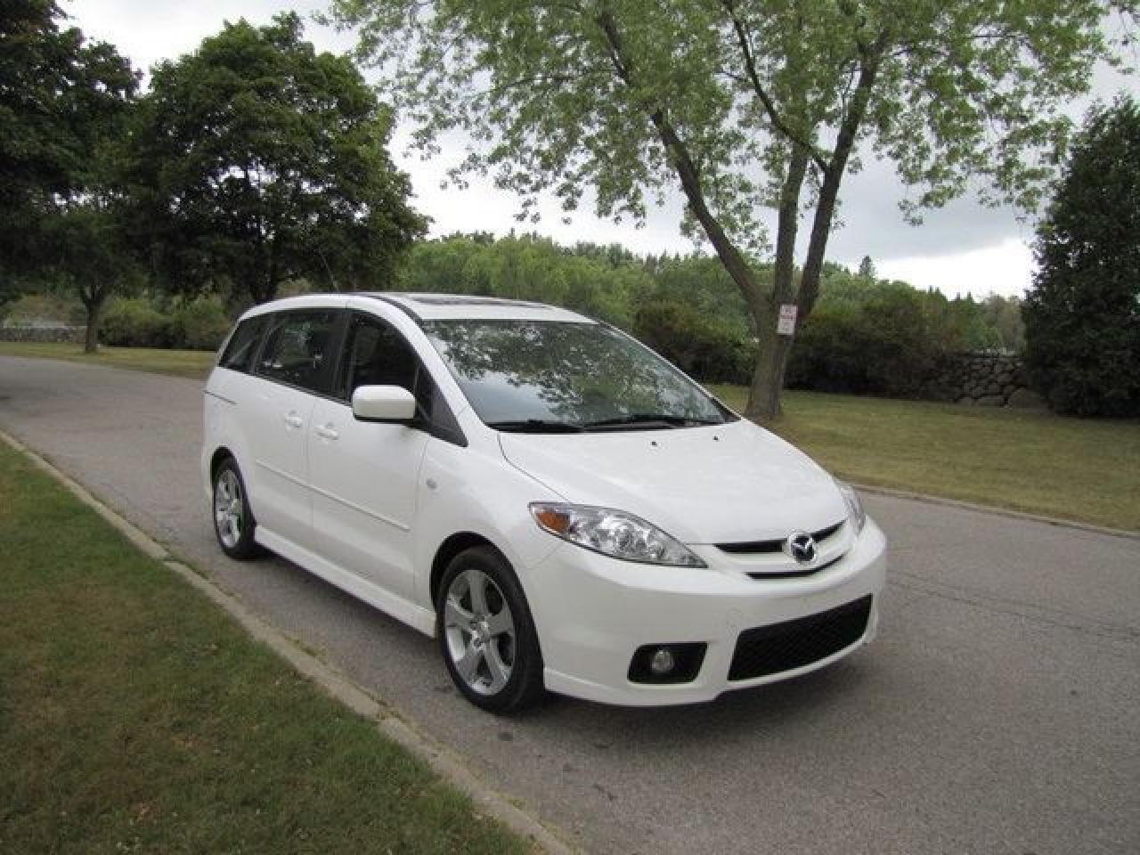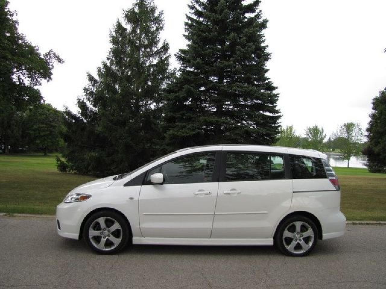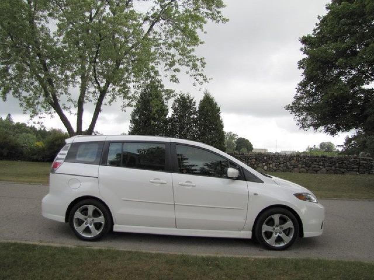 This 2007 Mazda MAZDA5 4dr Ron GS SUNROOF!! ALLOYS!! MAZDA LEASE RETURN!! Wagon features a 2.3L L4 DOHC 16V 4 cyl Gasoline engine. It is equipped with a 5 Speed Manual transmission. The vehicle is White with a Black Cloth interior. It is offered with the remaining factory warranty. Over 400 BETTER used cars in stock!! PLEASE CALL 1-866-348-8146 5.99% Financing + no payments up to 6 months available on approved credit!! Free Trial Exchange!! A+ Better Business Bureau rating!! Voted Guelph's Favorite dealer 2004-2009!! Since 1961. Taxes, licensing, and $5.00 OMVIC fee are extra. Call for details on our Free Trial Exchange! Thank you for considering Wilsons!!! Please call 1-866-348-8146 - This Mazda is in Excellent overall exterior condition, Excellent overall interior condition, Cloth seats - Air Conditioning, Cruise Control, Power Steering, Power Windows, Power Door Locks, Power Mirrors, Clock, Tachometer, Digital Info Center, Tilt Steering Wheel, Telescoping Steering Wheel, Steering Wheel Radio Controls, Sunroof, Driver Airbag, Passenger Airbag, Keyless Entry, ABS Brakes, Rear Defogger, Fog Lights, Intermittent Wipers, AM-FM, CD Player, Alloy Wheels, Cloth Interior Surface - Contact The Internet Department at 866-738-6045 or leads@markwilsonsbetterusedcarstc.dealer.com for more information. -