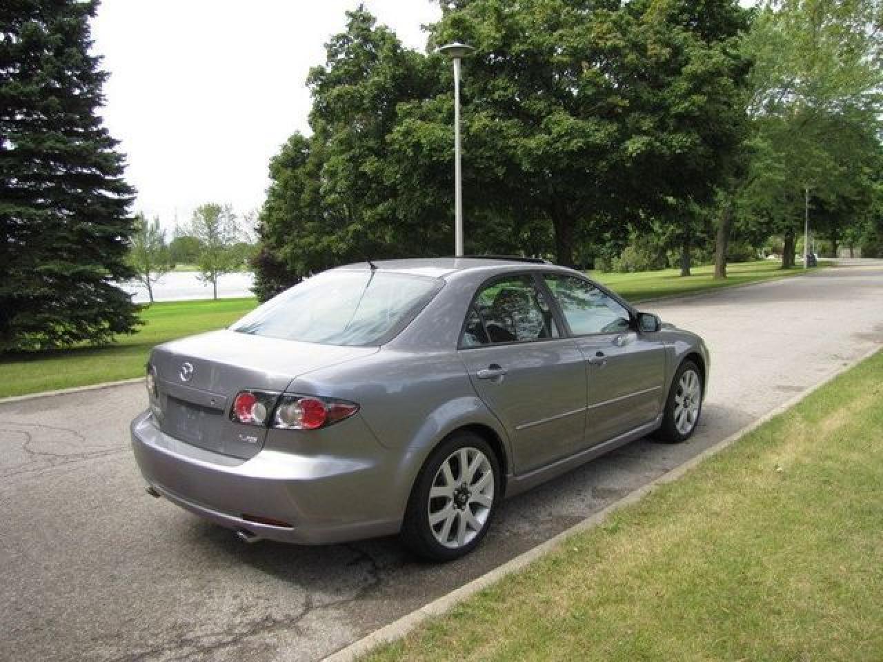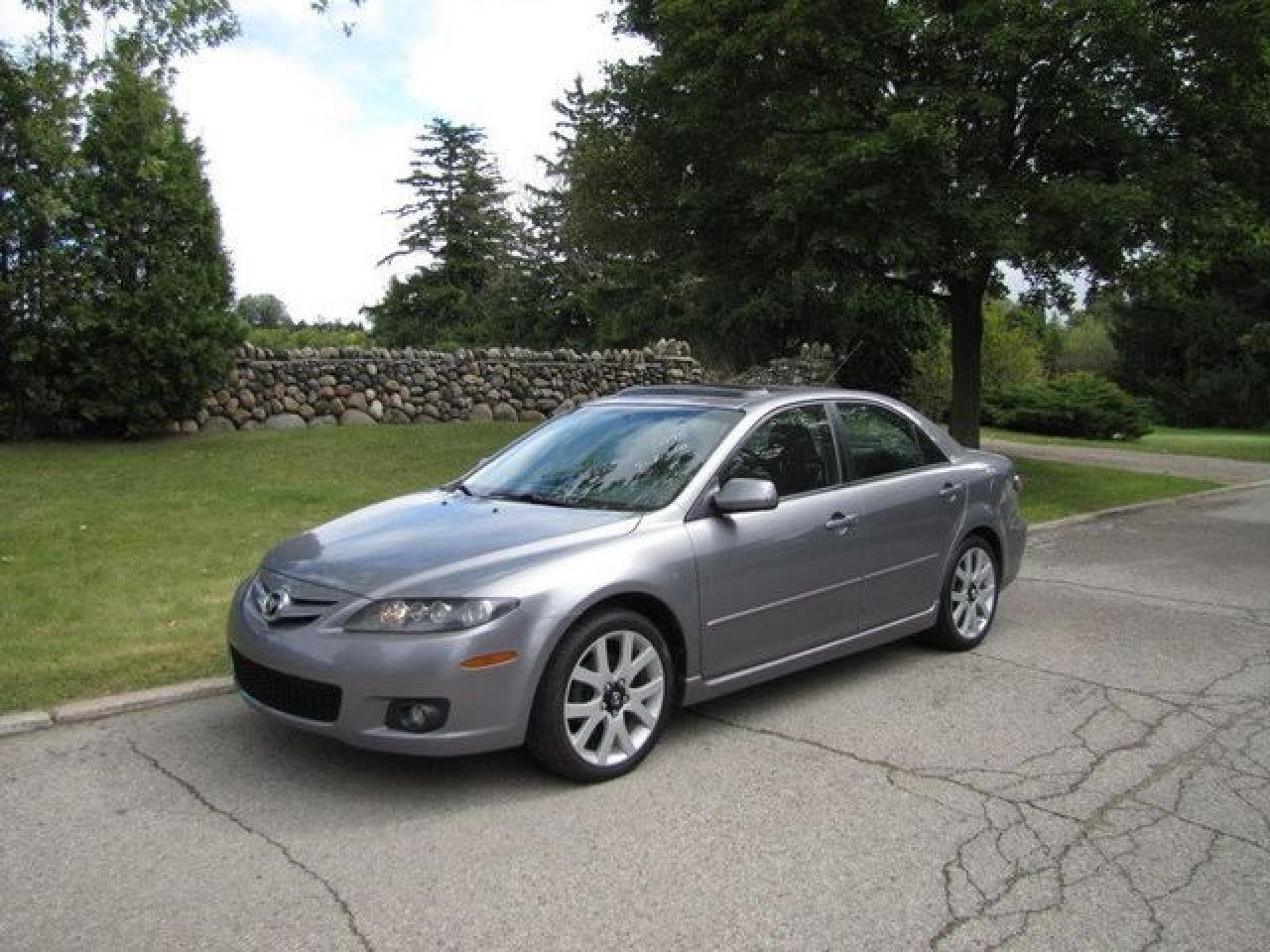 This 2007 Mazda MAZDA6 4dr GT V6 LEATHER-ROOF!! MAZDA LEASE RETURN!! Sedan features a 3.0L V6 DOHC 24V 6 cyl Gasoline engine. It is equipped with a Automatic transmission. The vehicle is Grey with a Black Leather interior. It is offered with the remaining factory warranty. Over 400 BETTER used cars in stock!! PLEASE CALL 1-866-348-8146 5.99% Financing + no payments up to 6 months available on approved credit!! Free Trial Exchange!! A+ Better Business Bureau rating!! Voted Guelph's Favourite dealer 2004-2009!! Since 1961. Taxes, licensing, and $5.00 OMVIC fee are extra. Call for details on our Free Trial Exchange! Thank you for considering Wilsons!!! Please call 1-866-348-8146. - This Mazda is in Excellent overall exterior condition, Excellent overall interior condition, Leather seats - Air Conditioning, Cruise Control, Power Steering, Power Windows, Power Door Locks, Power Mirrors, Power Drivers Seat, Power Passenger Seat, Heated Seat, Clock, Tachometer, Digital Info Center, Tilt Steering Wheel, Telescoping Steering Wheel, Sunroof, Driver Airbag, Passenger Airbag, Keyless Entry, ABS Brakes, Traction Control, Rear Defogger, Intermittent Wipers, AM-FM, CD Player, Aluminum Wheels, Leather Interior Surface - Contact The Internet Department at 866-738-6045 or leads@markwilsonsbetterusedcarstc.dealer.com for more information. -
