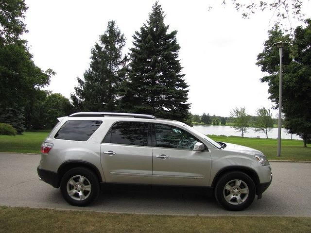 This 2008 GMC Acadia 4dr SLT TV-DVD!! LTHR- TWIN ROOFS!! NEW TIRES! GM LEASE RTN AWD SUV features a 3.6L V6 MPI 6 cyl Gasoline engine. It is equipped with a Automatic transmission. The vehicle is Silver with a Grey Leather interior. It is offered with the remaining factory warranty. Over 400 BETTER used cars in stock!! PLEASE CALL 1-866-348-8146 5.99% Financing + no payments up to 6 months available on approved credit!! Free Trial Exchange!! A+ Better Business Bureau rating!! Voted Guelph's Favourite dealer 2004-2009!! Since 1961. Taxes, licensing, and $5.00 OMVIC fee are extra. Call for details on our Free Trial Exchange! Thank you for considering Wilsons!!! Please call 1-866-348-8146. 4 BRAND NEW HANKOOK TIRES INCLUDED! - This GMC is in Excellent overall exterior condition, Excellent overall interior condition, Leather seats - Air Conditioning, Climate Control, Dual Zone Climate Control, Cruise Control, Tinted Windows, Power Steering, Power Windows, Power Door Locks, Power Mirrors, Leather Steering Wheel, Power Drivers Seat, Power Passenger Seat, Heated Seat, Roof Rack, Rear Air Conditioning, Clock, Tachometer, Digital Info Center, Homelink System, Tilt Steering Wheel, Steering Wheel Radio Controls, Sunroof, Driver Airbag, Passenger Airbag, Keyless Entry, ABS Brakes, Traction Control, Rear Defogger, Intermittent Wipers, AM-FM, CD Player, 18 inch Alloy Wheels, Leather Interior Surface, PARKING SENSORS! PWR SUNSHADE, OnStar, Power Lift Gate - Contact The Internet Department at 866-738-6045 or leads@markwilsonsbetterusedcarstc.dealer.com for more information. -