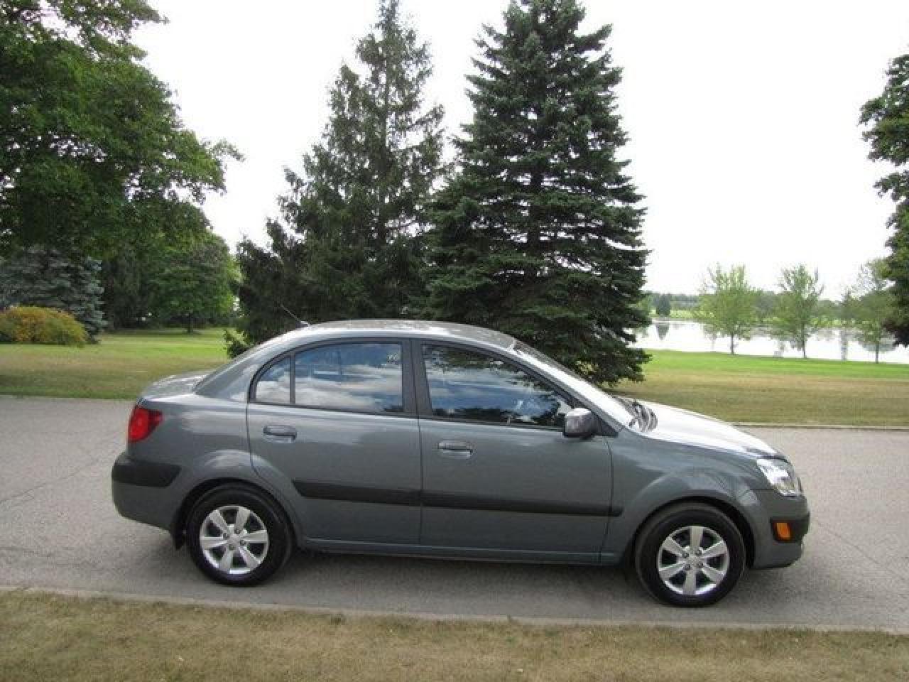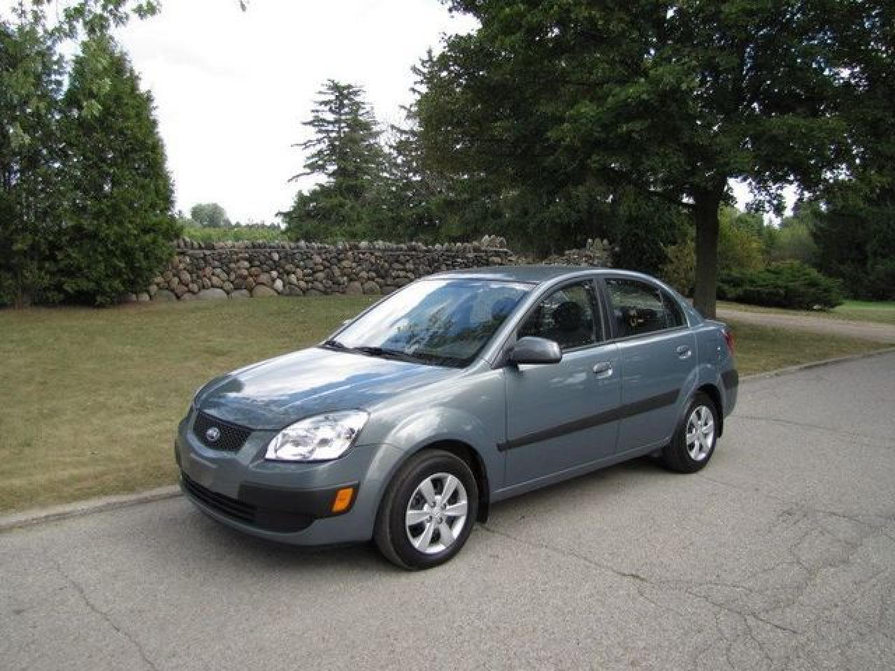 This 2009 Kia Rio 4dr EX HEATED SEATS!! LOADED!! Sedan features a 1.6L I4 CVVT DOHC 16V 4 cyl Gasoline engine. It is equipped with a Automatic transmission. The vehicle is Blue with a Grey Cloth interior. It is offered with the remaining factory warranty. Over 400 BETTER used cars in stock!! PLEASE CALL 1-866-348-8146 5.99% Financing + no payments up to 6 months available on approved credit!! Free Trial Exchange!! A+ Better Business Bureau rating!! Voted Guelph's Favourite dealer 2004-2009!! Since 1961. Taxes, licensing and $5.00 OMVIC fee are extra. Former daily rental. Call for details on our Free Trial Exchange! Thank you for considering Wilsons!!! Please call 1-866-348-8146. - This Kia is in Excellent overall exterior condition, Excellent overall interior condition, Cloth seats - Air Conditioning, Cruise Control, Power Steering, Power Windows, Power Door Locks, Power Mirrors, Heated Seat, Clock, Tachometer, Digital Info Center, Tilt Steering Wheel, Driver Airbag, Passenger Airbag, Keyless Entry, ABS Brakes, Rear Defogger, Intermittent Wipers, AM-FM, CD Player, Wheels, Cloth Interior Surface - Contact The Internet Department at 866-738-6045 or leads@markwilsonsbetterusedcarstc.dealer.com for more information. -