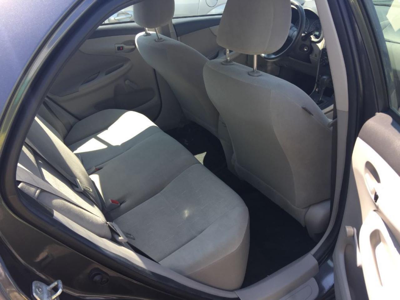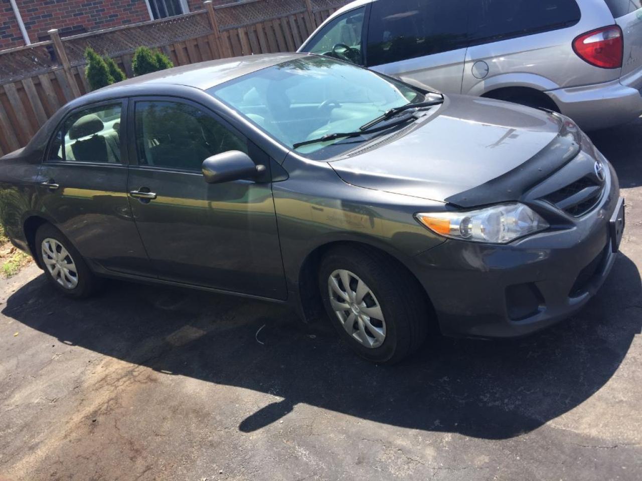 2011 TOYOTA COROLLA, with 124,029kms, certified and ready for the road. Smoothly drives and remain with peace of mind? you are set to drive. Overall it is taken care, clean inside and outside, no rust, no dent, no ding, with original paint. Looks like black outside but is dark-gray.