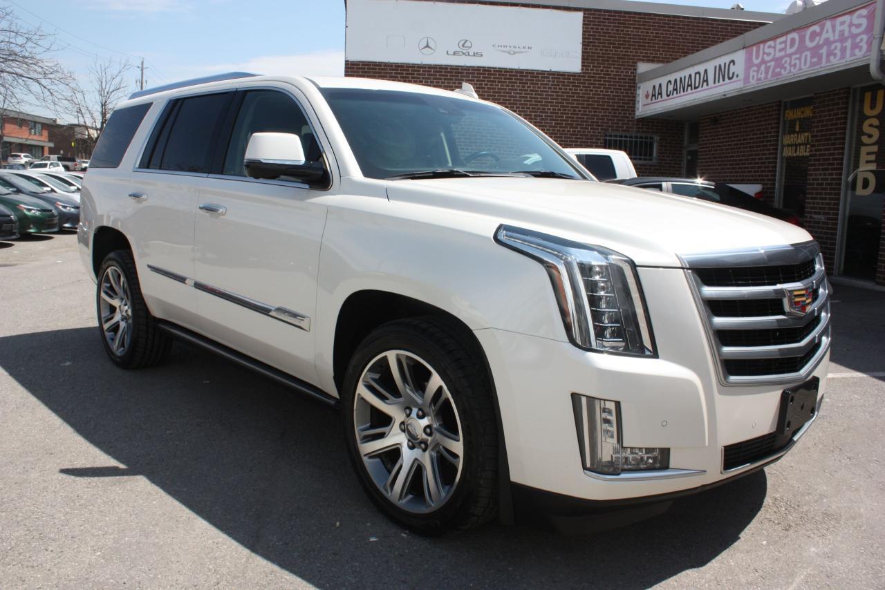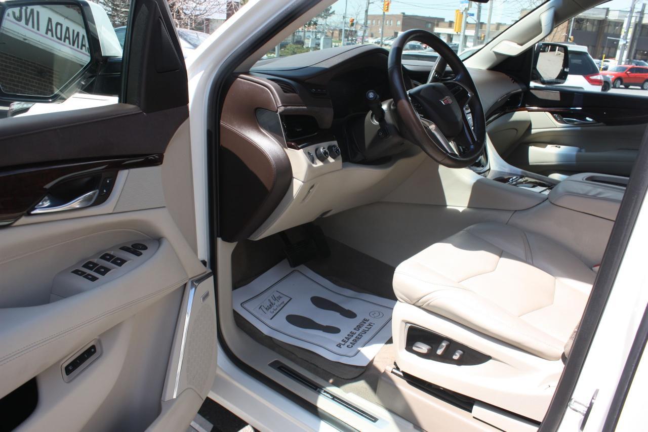 2015 CADILLAC ESCALADE WHITE ON BEIGE LEATHER INTERIOR, COMES WITH FULL POWER GROUP OPTIONS, LEATHER, SUNROOF, NAVIGATION, 360 CAMERA, HEADS UP DISPLAY, DVD, XM RADIO, CHROME WHEELS, IN AND OUT RUNNING BOARDS, HEATED AND COOLED SEATS POWER WINDOWS, POWER LOCKS, AND MUCH MUCH MORE, MUST SEE THIS VEHICLE COMES FULLY CERTIFIED, E-TEST AND ADMIN FEES ALL INCLUDED IN THE PRICE, FOR MORE INFO PLEASE CONTACT US AT 1855-350-1313