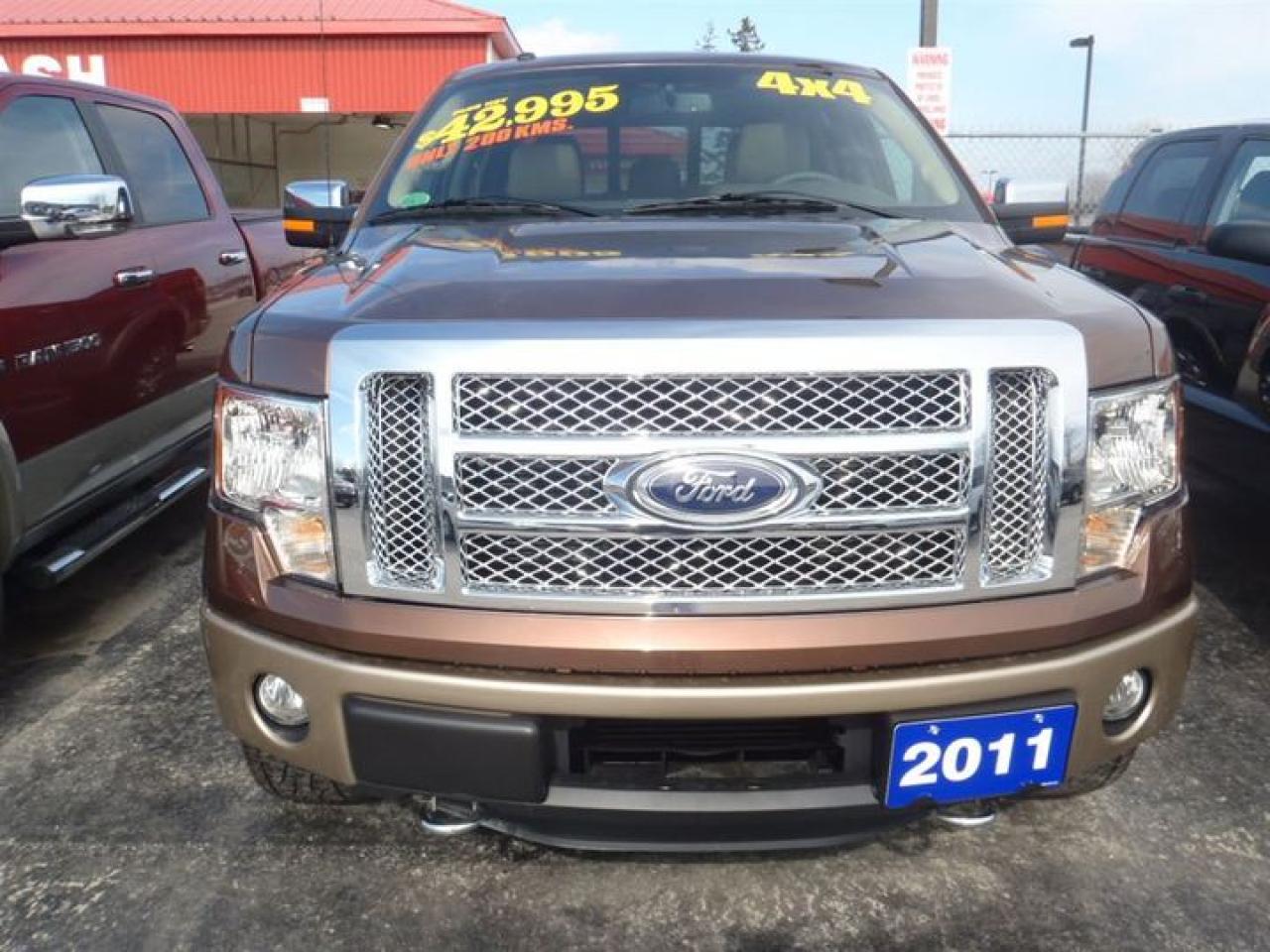 3.5L. V6 2011 GEORGOUS GOLDEN BRONZE METALLIC ON ADOBE TAN LEATHER TRIMMED SEATS,F-150 SUPERCREW 4X4 COMES WITH SHIFT ON THE FLY,TRAILER SWAY CONTROL,TRAILER TOWING SYSTEM,RUNNING BOARDS,MICROSOFT SYNC,KEYPAD ENTRY,LEATHER WRAPPED STEERING WHEEL WITH CONTROLS,MEMORY HEATED AND COOLED SEATS,4.2 LCD SCREEN,FRONT TOW HOOKS,FOG LIGHTS,POWER SLIDING REAR WINDOW,ANGULAR STEP BAR,CHROME POWER HEATED SIGNAL MIRRORS,POWER MOONROOF,SHORT BOX. LOADED!!!! 30 Years in business, A+ BBB rated company, 200 units in stock, 2 locations. Home of the Warranty for Life, full service department, on the spot financing. Bad credit welcomed. Winner of Reader Choice Award for the best dealer in the Listowel area. Winner Of Business Of The Year Award from the North Perth Chamber Of Commerce! Free carproof or carfax. No extra fees no extra costs. All prices + HST & Licensing. Save money! (Thanks for shopping at STOP23 AUTO SALES LTD).