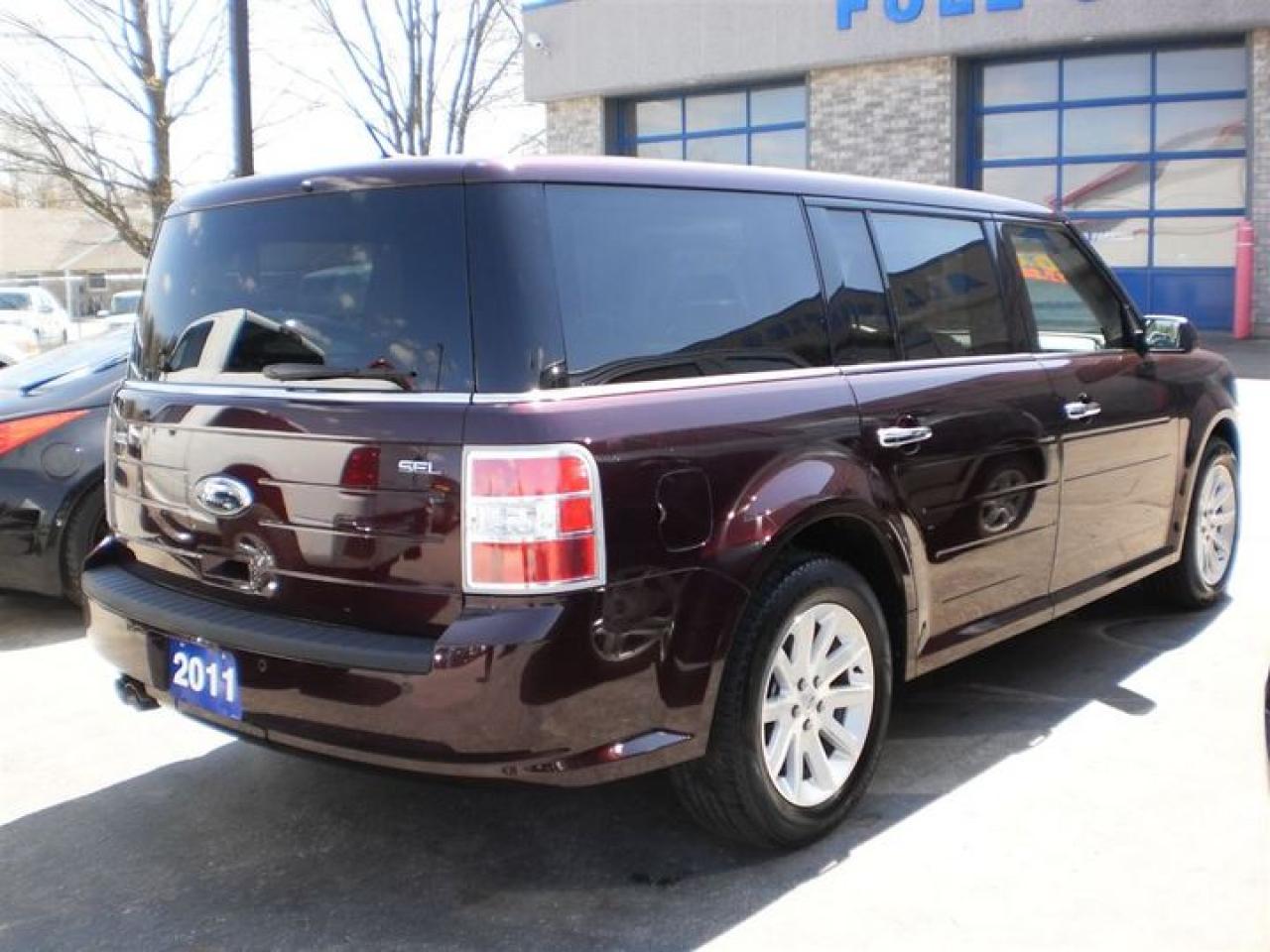 3.5L. V6. THIS 2011 FORD FLEX SEL COMES WITH THE FOLLOWING FEATURES. IT HAS A SUNROOF WITH REAR SKYLIGHTS,HEATED LEATHER SEATS,LEATHER WRAPPED STEERING WHEEL WITH CONTROLS,3rd ROW SEATING,FOG LIGHTS, KEYPAD ENTRY,HEATED MIRRORS,MICROSOFT SYNC,DUAL AIR AND HEAT,7 PASSENGER AND MORE!! 30 Years in business, A+ BBB rated company, 200 units in stock, 2 locations. Home of the Warranty for Life, full service department, on the spot financing. Bad credit welcomed. Winner of Reader Choice Award for the best dealer in the Listowel area. Winner Of Business Of The Year Award from the North Perth Chamber Of Commerce! Free carproof or carfax. No extra fees no extra costs. All prices + HST & Licensing. Save money! (Thanks for shopping at STOP23 AUTO SALES LTD).