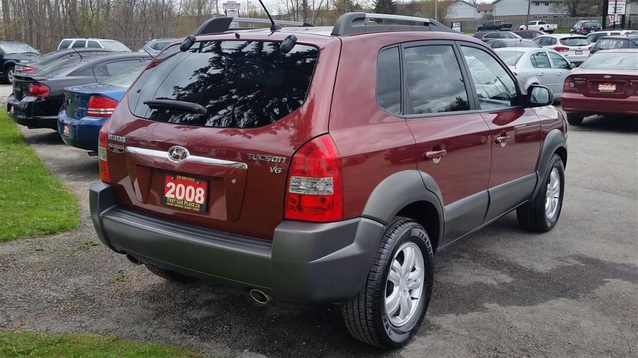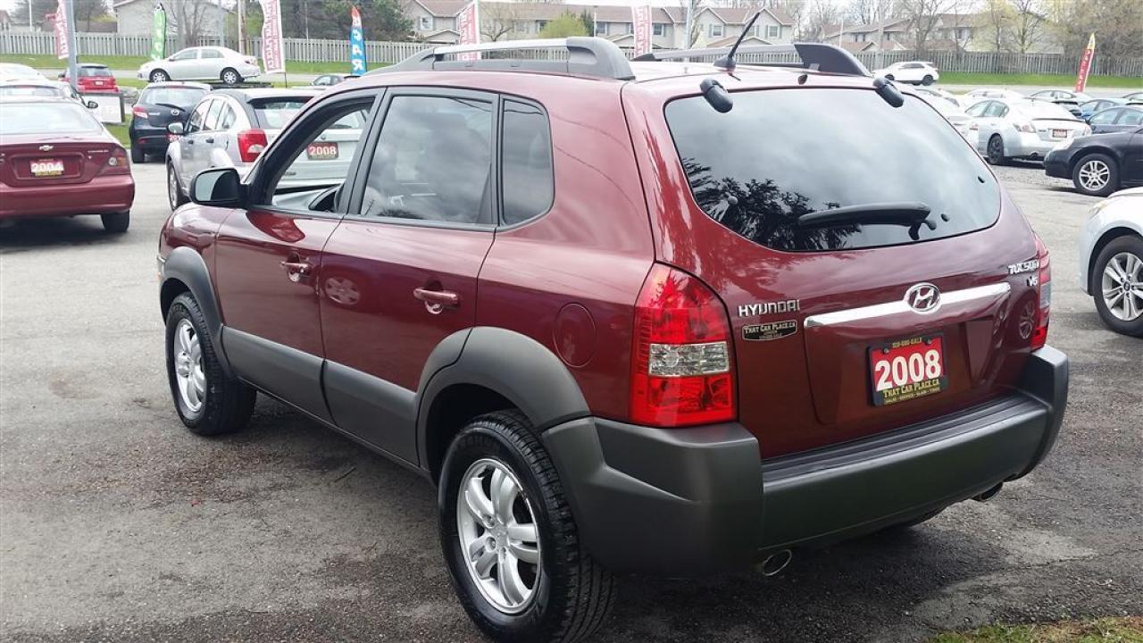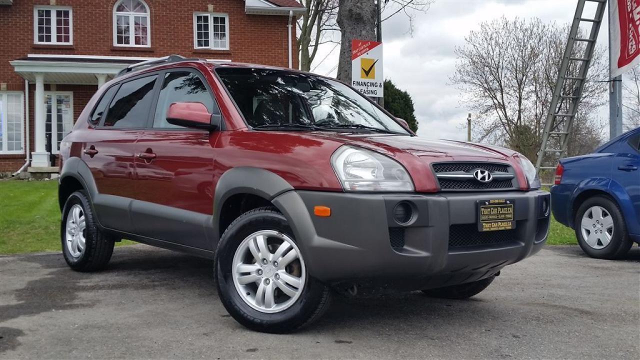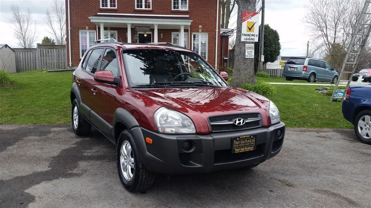 Check out the 2008 Hyundai Tucson red on dark grey automatic transmission with 107 kilometers and a six cylinder 2.7 litre engine. Featuring cruise control alloy wheels antilock brakes roof rack and a traction control system. Air conditioning for those hot summer days and heated seats to warm the tushie up on chilly nights as well as tilt steering tinted windows xenon headlights and an all power group. Come in and see us today or apply online.Vehicle is sold Safety and Emission Tested. HST and Licensing is extra.That Car Place in business for over 27 years since 1989 Voted #1 Best Used Car Dealership in London Ontario for 2014 & 2015 & 2016 Top Choice Award for 2015 & 2016 as well as Londons Readers Choice Award 2014 & 2015. That Car Place holds a solid A Better Business Bureau rating and achieved the most likes on all Social Media ever in the used car dealership industry.That Car Place uses an exclusive third party tool that accurately prices and monitors vehicle prices competitively to guarantee customers best value. That is right NO NEED FOR HAGGLING! No Hidden admin fees. No gimmicks just honesty and integrity at no additional charge.We make the buying process Simple and StressFree our reviews speak for themselves. Google httpswww.google.cawebhpsourcedchromeinstant&ion1&espv2&ieUTF8#qthat%20car%20place&lrd0x882ef3f1a412803b0x4ac067228e36535c1Dealer Rater httpwww.dealerrater.cadealerThatCarPlacereview43090N49.com httpswww.n49.combiz108920thatcarplaceonlondon443exeterrdBBB httpwww.bbb.orgwesternontariobusinessreviewsautodealersusedcarsthatcarplaceinlondonon17190customerreviewscachetyAll vehicles go under an extensive inspection Receive a SemiSynthetic Oillubefilter. Any vehicle with below 50% brakes will be replaced! A detailed Free Car Proof Report is including with every vehicle to present the vehicles history or accidents. Full Safety inspection with 30 days 100% safety related items warranty done by That Car Place along with an Emission test and to top it off with a Full cleanup and Detailing. Our Finance Specialists provides same day approvals and work hard 247 to ensure achieving the lowest interest rate possible best terms and fully open end loans.Minimum qualifications. Whether it's Good credit Bad credit No Credit Bankruptcy Proposal Divorce Repossessions $0 down or simply low affordable payments we can get it done for you. Apply securely with confidence at httpthatcarplace.caapplyVisit us ThatCarPlace.ca 443 Exeter Road London Ontario Or call us 519686SALE (7253) Or toll free 18669691999 Or by email sales@thatcarplace.ca**Payments are based off qualifying monthly term $0 down & 4.9% interest. Qualifying term and rate of borrowing varies by lender. Example The cost of borrowing on a vehicle with a purchase price of $10000 at 4.9% over 60 month term is $1499.78. Rates are subject to change without notice.