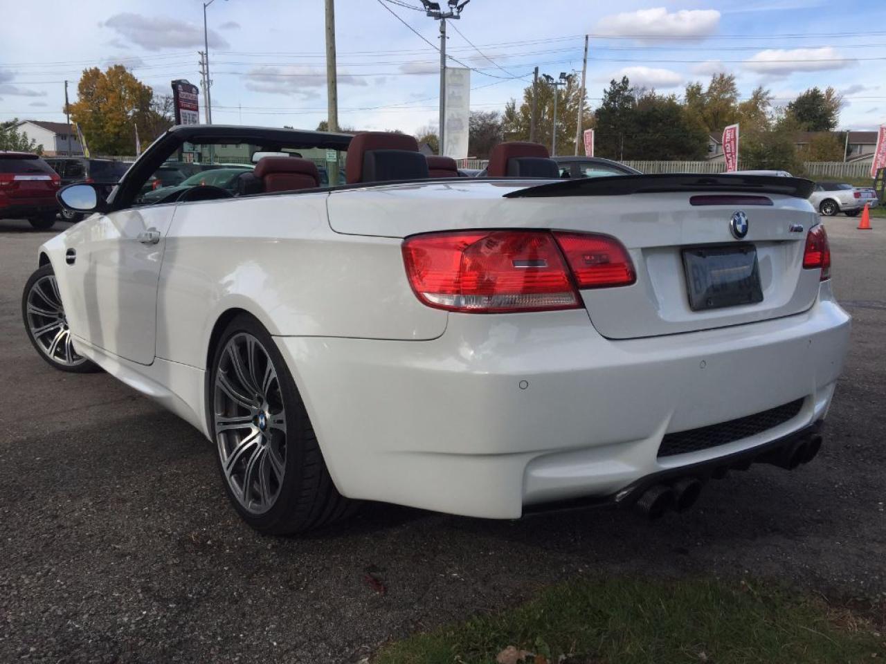This convertible 2009 BMW M3 has LOW KM'S and is absolutely LOADED!!! Comes with BLUETOOTH, USB/AUX/CD/MP3 connectivity for your IPOD/IPHONE or ANDROID music playing device, HEATED FRONT SEATS, CARBON FIBRE GRILL/EXTERIOR MIRRORS/SPOILER, LEATHER RED INTERIOR, REAR SENSORS, PREMIUM SOUND SYSTEM, V8 ENGINE, DUAL EXHAUST, AUTOMATIC TRANSMISSION WITH DUAL CLUTCH & PADDLE SHIFTERS and many more amazing features. Call 1-519-686-7253 or Visit 443 Exeter Rd.