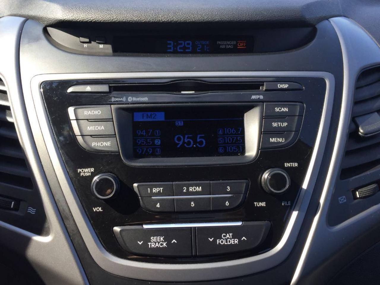 This 2015 Hyundai Elantra GL has a CLEAN CARPROOF and is LOADED!!! Comes with BLUETOOTH, HEATED FRONT ROW SEATS, USB/AUX/MP3/CD connectivity for your IPHONE/IPOD or ANDROID music playing device, Steering Wheel Audio Controls, Comfortable Interior with Spacious Trunk and is Great on Gas. Call 1-519-686-7253 or Visit 443 Exeter Rd.