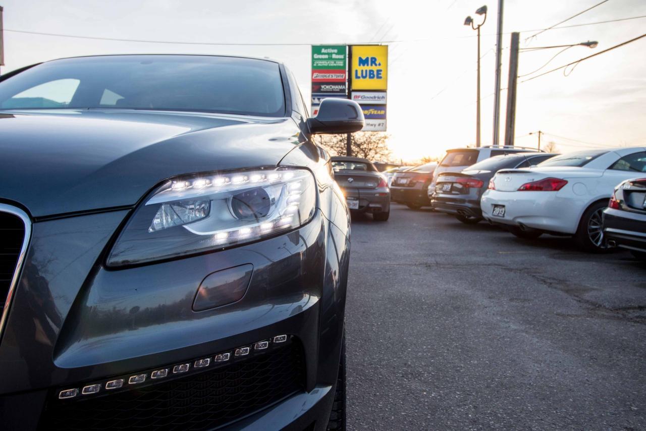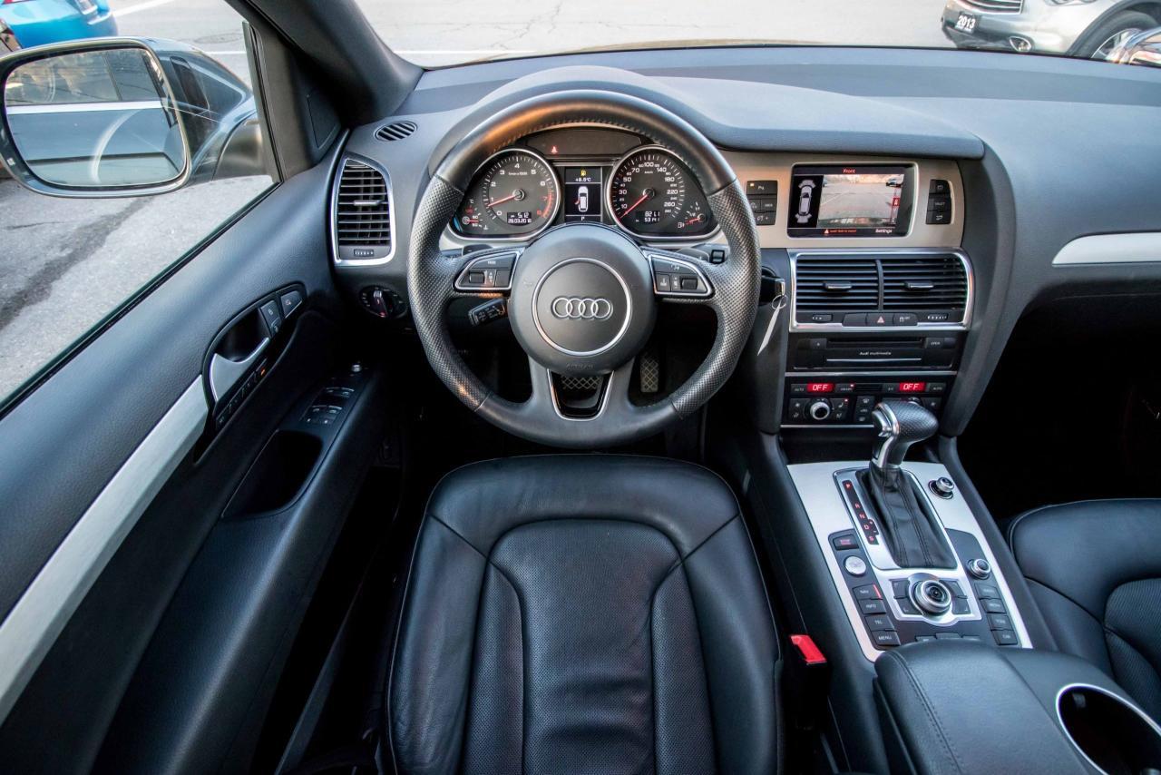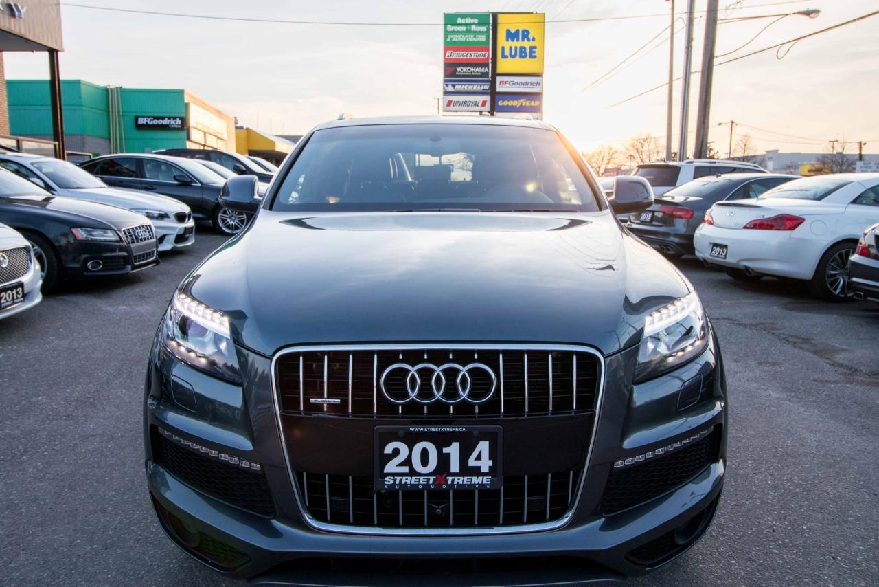 The 2014 Audi Q7 is the flagship luxury SUV in the four-ring brand’s lineup, and the model serves well in that capacity. The large, seven-seat crossover comes with a SUPER CHARGED 3.0 litre V6 engine that produces 333HP and 325 lb-ft of torque!! Inside, the Q7 gets a luxurious cabin with standard leather upholstery, 12-way power adjustable heated front seats, dual-zone climate control, 40/20/40 split folding and sliding rear seats, Bluetooth hands-free capability, and an 11-speaker sound system. Heated rear seats, a panoramic sunroof, and Audi MMI navigation system with Audi Connect infotainment.