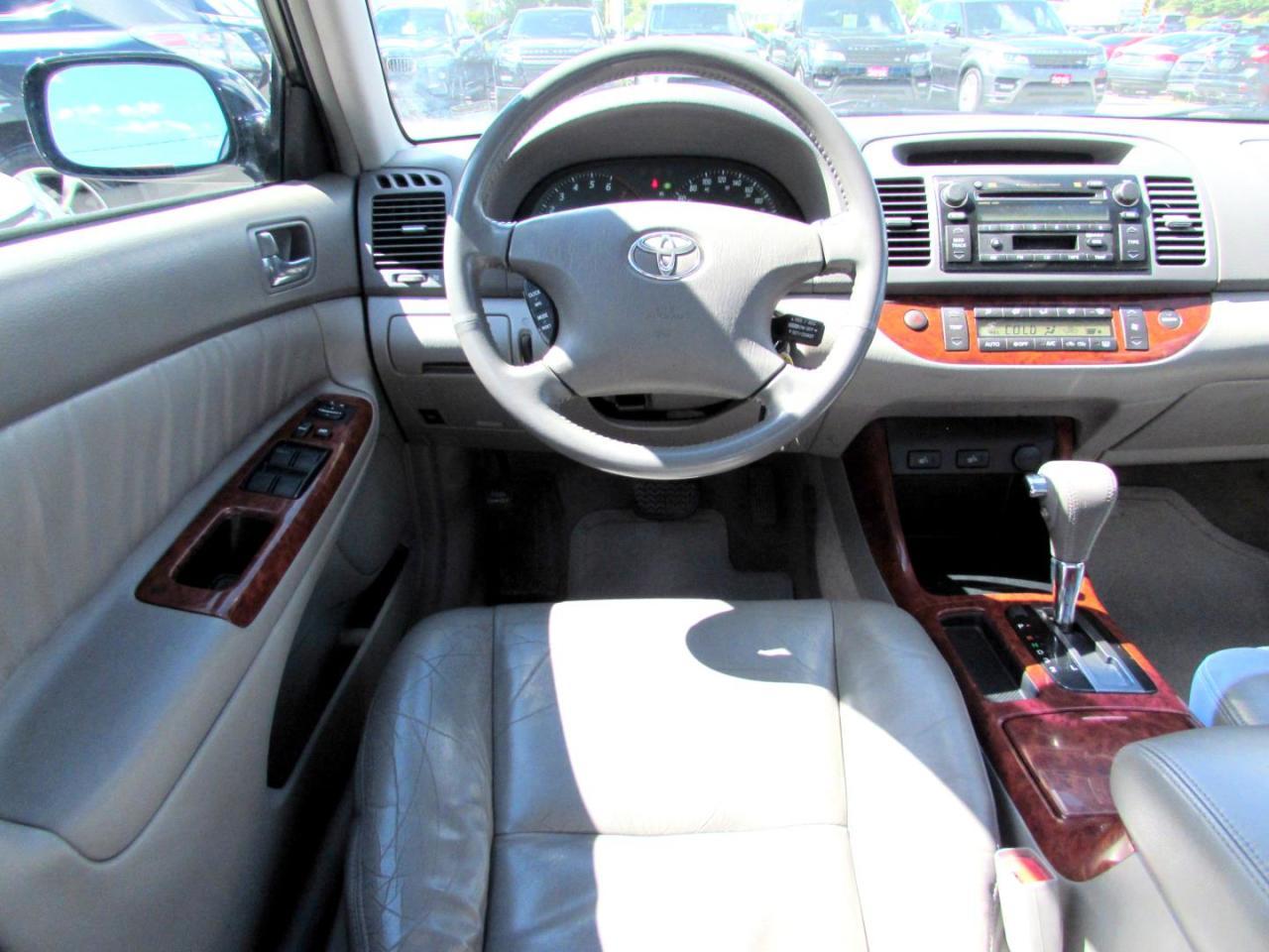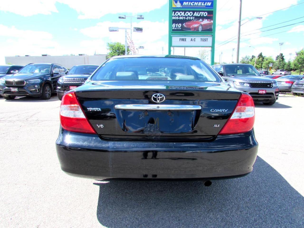 Very Clean Toyota Camry LE 3.0L Sedan With Automatic Transmission, Black on Grey Leather Interior. Loaded with: Power Door Locks, Power Windows, CD, AC, Heated Leather Bucket Seats, Sunroof, Alloys, Steering Mount Controls. Auto Moto Of Ontario @ 583 Main St E. , Milton, L9T3J2 ON. Please call for further details. 905-281-2255, ALL TRADE INS ARE WELCOMED!! ALL TRADE-IN VEHICLES OFFERED FOR SALE AS TRADED. THE VEHICLE WAS DRIVEN DAILY PRIOR TO BEING TRADED IN. We are required by OMVIC to state that this vehicle is being sold AS IS, unfit, not e-tested and is not represented as being in a road worthy condition, mechanically sound or maintained at any guaranteed level of quality. The vehicle may not be fit for use as a means of transportation and may require substantial repairs at the purchasers expense. It may not be possible to register the vehicle to be driven in its current condition