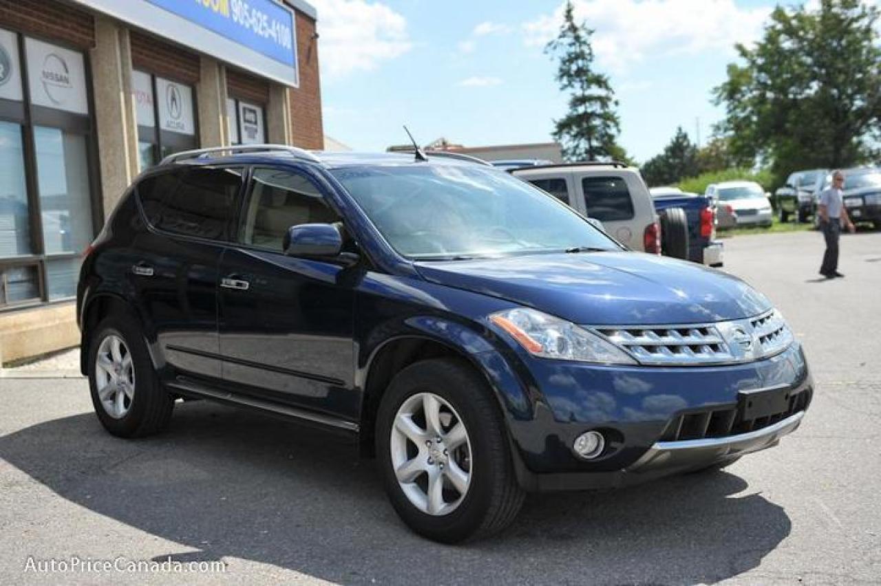 TRUST YOUR DEALER!! Online Credit App, Free CarProof History Reports & 300 vehicles @ www.autopricecanada.com. Certified, safetied & E-tested! Warranty with every vehicle!06 Murano SE PACKAGE,3.5L,Leather,P/glass roof,rearview cam,18in wheels,full power group,p/seat,heated seats,d/climate controls,steering controls,p/adjusting pedals,Bose sound w/6 indash cd/cass,F+S air bags,auto/lights,abs,keyless entry,1 owner,off lease,all original,local(Canadian vehicle),Very sharp!!! CREDIT PROBLEMS? www.autopricecanada.com for 24 Hr Easy, Secure, Online Credit Application?get approved before you shop! REMEMBER, RESEARCHING YOUR DEALER IS AS IMPORTANT AS RESEARCHING YOUR VEHICLE! COMPARE OUR EQUIPMENT, MILEAGE AND PRICING!!!CB149FA52FA21F