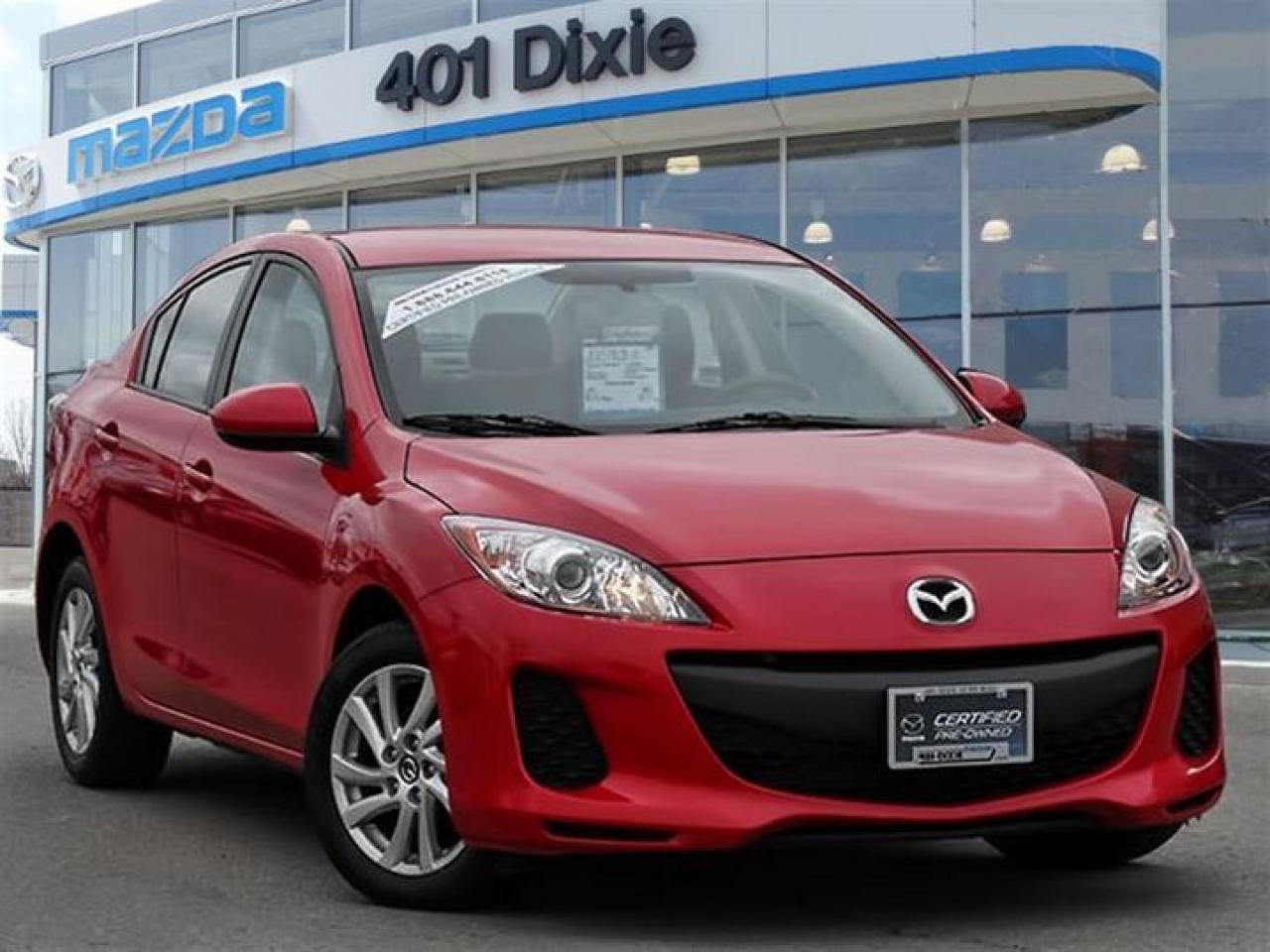 POWER TRAIN WARRANTY FOR 5 YEARS OR 100,000 KM (FROM IN-SERVICE DATE) THREE YEARS OR 80,000 KM COMPREHENSIVE ALONG WITH 24/7 EMERGENCY ROADSIDE ASSISTANCE. Life's greatest moments are spent on the road with the ones we love, and when you're in the market for a pre-owned vehicle, our 2013 Mazda3 is the perfect ride to get you from point A to point B comfortably and stylishly. The Mazda3 is a favourite among compact sedans. You can expect crisp-handling, a modern design and a very fuel efficient engine. In a GX trim this vehicle is equipped with an array of features such as key less entry, automatic windows, power doors and power locks, 4 wheel disc brakes and a AUX input just to name a few. This sedan in particular is a steal! Check out it's low mileage! Who says some finds can't be as good as new? Remember, our objective is to get you cruising away with a smile on your face and a few extra dollars in your pocket. No credit, bad credit, no problem. Come in today and join the 401-Dixie Mazda Family because were not trying to sell you a car, were selling you a lifestyle. Weve always heard positive feedback from our Mazda3 enthusiasts, so if youre ready to Zoom-Zoom, stop in and test drive one today. ***PLEASE NOTE, THIS IS A PREVIOUSLY OWNED RENTAL CAR.***