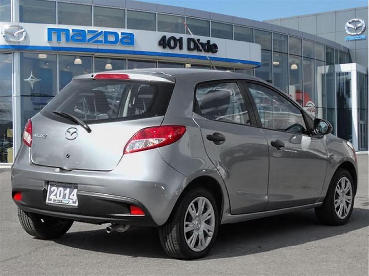 POWER TRAIN WARRANTY FOR 5 YEARS OR 100,000 KM (FROM IN-SERVICE DATE) THREE YEARS OR 80,000 KM COMPREHENSIVE ALONG WITH 24/7 EMERGENCY ROADSIDE ASSISTANCE. Its not about the size; its about how it drives. If youre looking for practical, stylish and economical, our 2014 Mazda2 is the perfect compact car thats value-packed with everything youd expect in a Mazda. If youre a student on a tight budget or a recent grad trying to stretch your dollar, this vehicle will save you a pretty penny every time you fill up. You could say the car has a boxy look to it but theres a sporty-ness about it as well that makes it look a lot pricier than your average compact hatchback. Our Mazda2 comes in a GX trim which means youll be treated to power door locks, power windows, tilt steering, ABS with electronic brake force distribution, dynamic stability control and traction control. In a modern cloth interior youll notice that the Mazda2s features are visible and easy to reach. Remember, our objective is to get you cruising away with a smile on your face and a few extra dollars in your pocket. No credit, bad credit, no problem. Come in today and join the 401-Dixie Mazda Family because were not trying to sell you a car, were selling you a lifestyle. Call in and book your personalized test drive. ***PLEASE NOTE, THIS IS A PREVIOUSLY OWNED RENTAL CAR.***